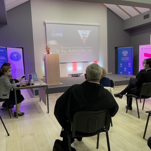 – „Wychowanie w trosce o wartości. Św. Maksymilian patronem trudnych wyborów” to konferencja szczególnie istotna w dzisiejszych czasach. Ta cenna inicjatywa, która jest elementem obchodów przypadającej w tym roku 80. rocznicy śmierci św. Maksymiliana. Jako Członek Zarządu Województwa Małopolskiego pragnę przypomnieć o oświadczeniu Sejmiku Województwa Małopolskiego z 25 stycznia 2021 roku w sprawie ustanowienia w Małopolsce roku 2021 – Rokiem Świętego Maksymiliana Marii Kolbego. Dzięki temu wspólnie zaznaczyliśmy obecność postaci świętego w życiu naszej regionalnej wspólnoty. Ogłoszenie św. Maksymiliana Marii Kolbego patronem roku 2021 pozwoli jeszcze mocniej podkreślić trwałe więzi łączące go z materialnym i niematerialnym dziedzictwem Małopolski oraz jej mieszkańców – podkreśliła, otwierając konferencję, Iwona Gibas z zarządu województwa.