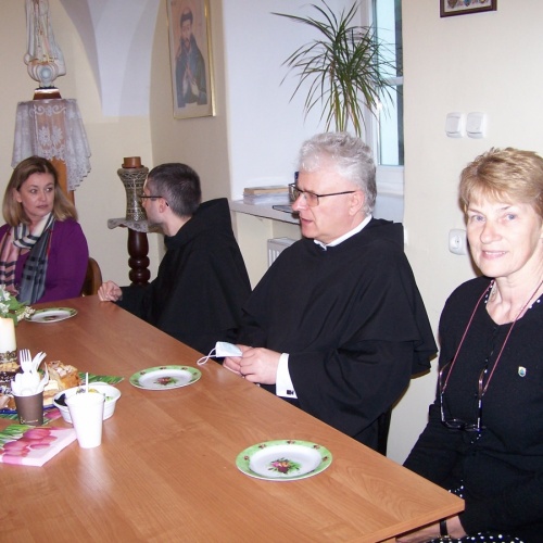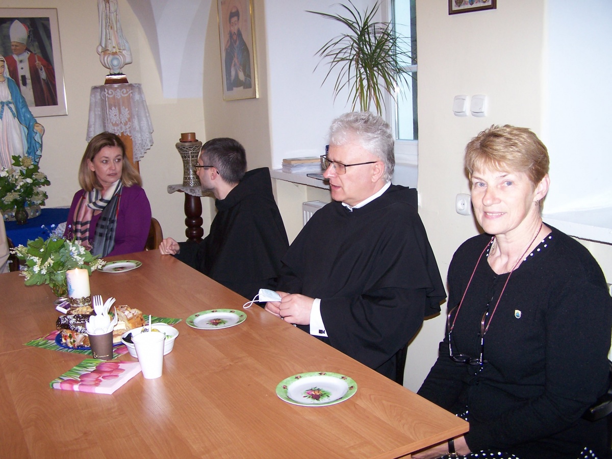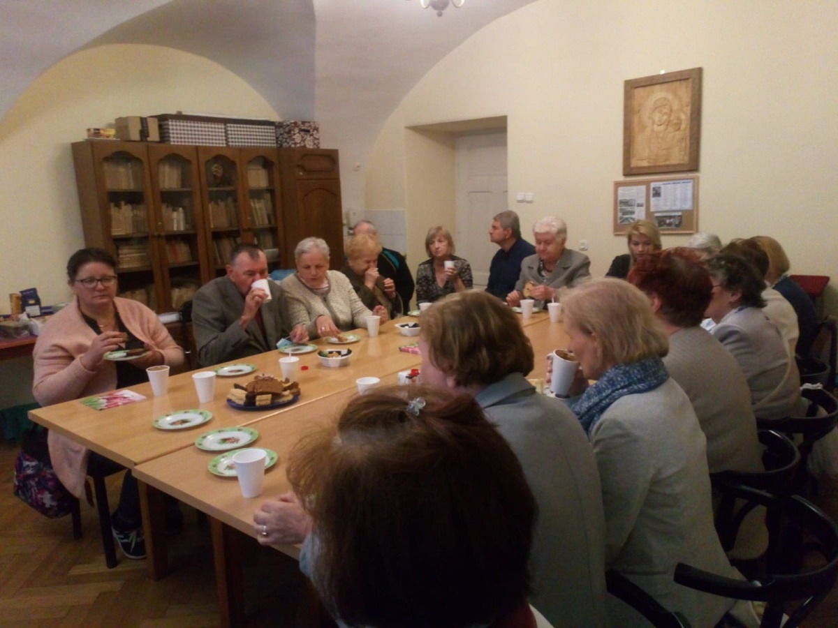 Po Mszy św. i nabożeństwie pierwszosobotnim odbyło się spotkanie rycerstwa z o. Arkadiuszem w salce przy kawie i domowym cieście. O. Arek przedstawił program planowanych obchodów 80. rocznicy śmierci św. Maksymiliana Kolbego oraz zapoznał nas z różnymi inicjatywami podejmowanymi przez Centrum św. Maksymiliana w Harmężach.