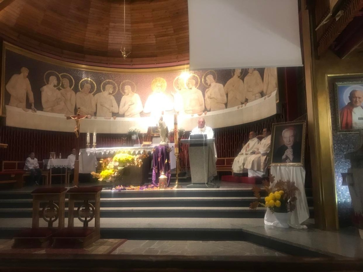 O 17.00 uczestniczyliśmy w uroczystej Eucharystii w dziękczynnej za 40 lat istnienia MI w Ciścu z prośbą o dalszy rozwój której przewodniczył ks. Proboszcz Marek Nieciąg w koncelebrze ks. prałat Władysław Nowobilski, ks. Marcin Mendrzak. Homilię wygłosił ks. Prałat wskazując św. Maksymiliana jako wzór do naśladowania w oddaniu się Niepokalanej a przez jej ręce Trójcy Jedynej. Przypomniał iż, wtorek w naszej parafii jest szczególnym dniem w którym spotykany się kwadrans przed msza święta na modlitwie do naszego patrona wypraszając wiele łask.