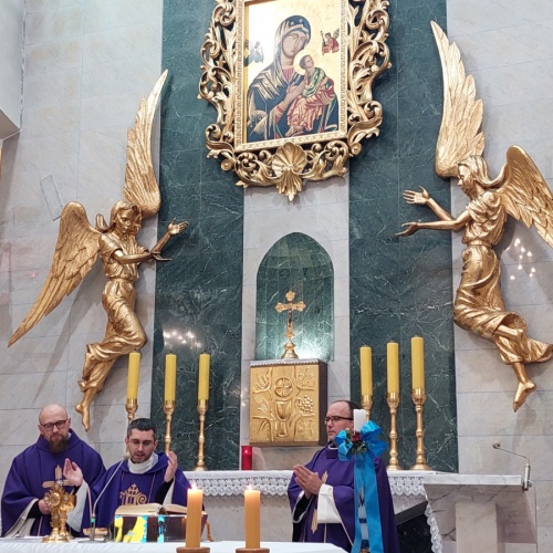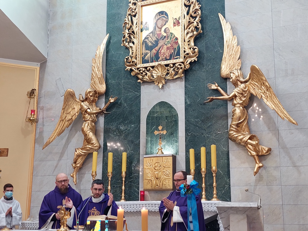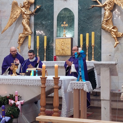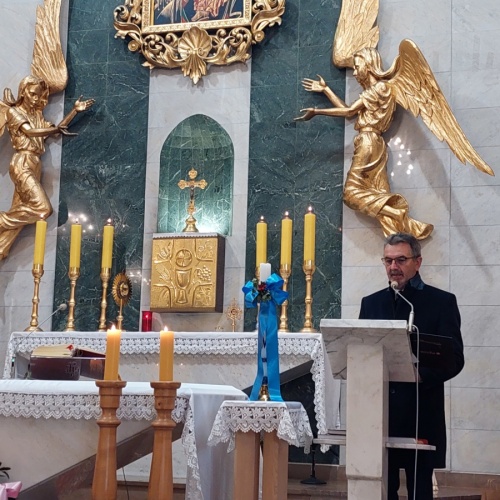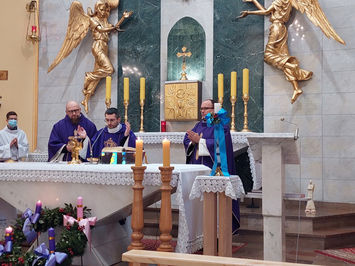 Mszy świętej przewodniczył o. Arkadiusz Bąk, a koncelebrowali ks. proboszcz Rałaf Brzuchański i o. Tomasz Pawlik z Rychwałdu. W swojej homilii o. Arkadiusz nawiązał do Ewangelii św. Mateusza: „Eliasz istotnie przyjdzie i naprawi wszystko”. Kaznodzieja powiedział, że misją Jezusa jest naprawić ten świat, doprowadzić do zbawienia - podobnie i MI stawia sobie taki sam cel: Zdobyć cały świat dla Chrystusa przez Niepokalaną". Eliasz zapowiadał przyjście Mesjasza, który dokona pełnego wyzwolenia. Prorok był siewcą, by ktoś inny zebrał żniwo. Kładł fundament, by ktoś inny wznosił mury, otwierał nam oczy, byśmy to my mogli zobaczyć. „… nie poznali Go postąpili z nim tak jak chcieli”.
