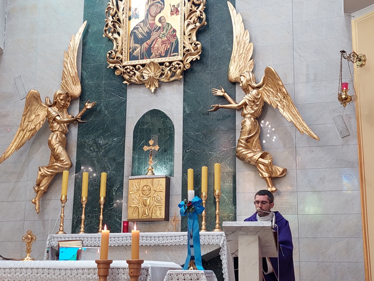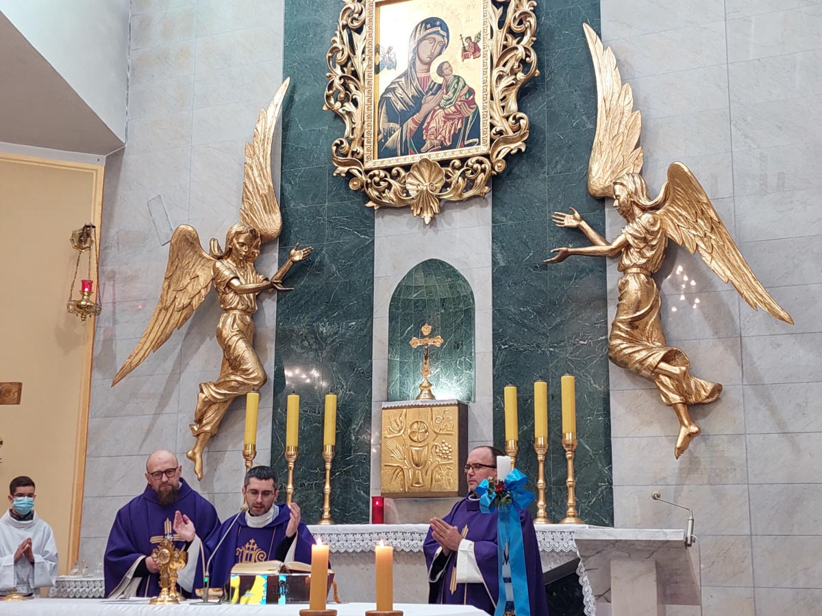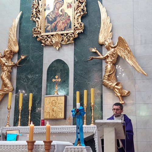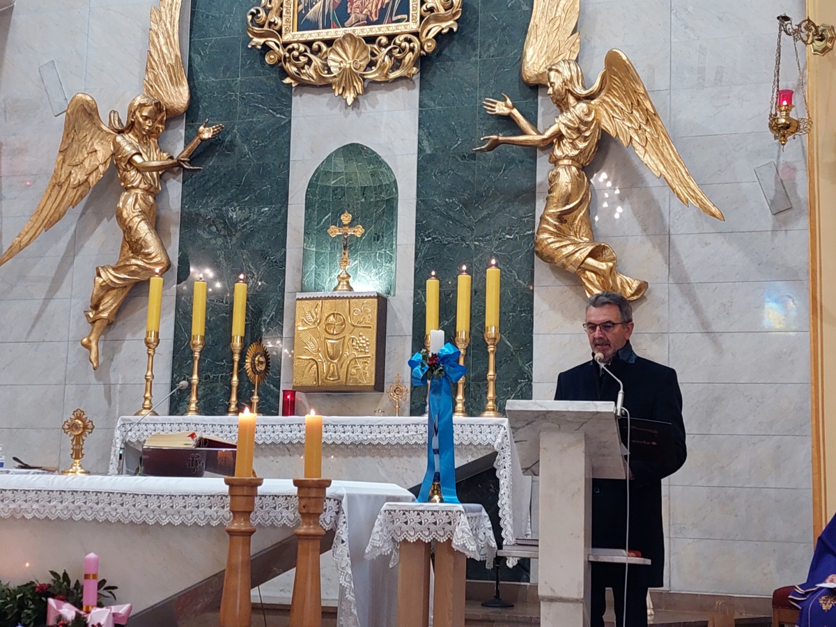 Mszy świętej przewodniczył o. Arkadiusz Bąk, a koncelebrowali ks. proboszcz Rałaf Brzuchański i o. Tomasz Pawlik z Rychwałdu. W swojej homilii o. Arkadiusz nawiązał do Ewangelii św. Mateusza: „Eliasz istotnie przyjdzie i naprawi wszystko”. Kaznodzieja powiedział, że misją Jezusa jest naprawić ten świat, doprowadzić do zbawienia - podobnie i MI stawia sobie taki sam cel: Zdobyć cały świat dla Chrystusa przez Niepokalaną". Eliasz zapowiadał przyjście Mesjasza, który dokona pełnego wyzwolenia. Prorok był siewcą, by ktoś inny zebrał żniwo. Kładł fundament, by ktoś inny wznosił mury, otwierał nam oczy, byśmy to my mogli zobaczyć. „… nie poznali Go postąpili z nim tak jak chcieli”.