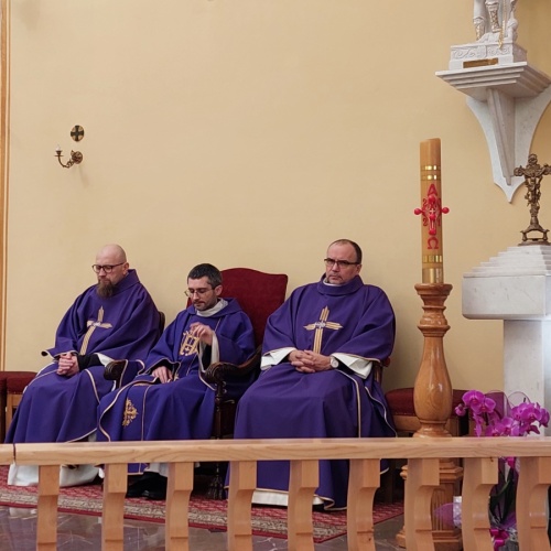 O. Arkadiusz zakończył modlitwą św. Franciszka: "Wszechmogący, wiekuisty, sprawiedliwy i miłosierny Boże, daj nam nędznym czynić dla Ciebie to, o czym wiemy, że tego chcesz i chcieć zawsze tego, co się Tobie podoba, abyśmy wewnętrznie oczyszczeni, wewnętrznie oświeceni i rozpaleni ogniem Ducha Świętego, mogli iść śladami umiłowanego Syna Twego, Pana naszego Jezusa Chrystusa i dojść do Ciebie, Najwyższy, jedynie dzięki Twej łasce, który żyjesz i królujesz, i odbierasz hołd w doskonałej Trójcy i prostej Jedności, Bóg wszechmogący przez wszystkie wieki wieków. Amen."