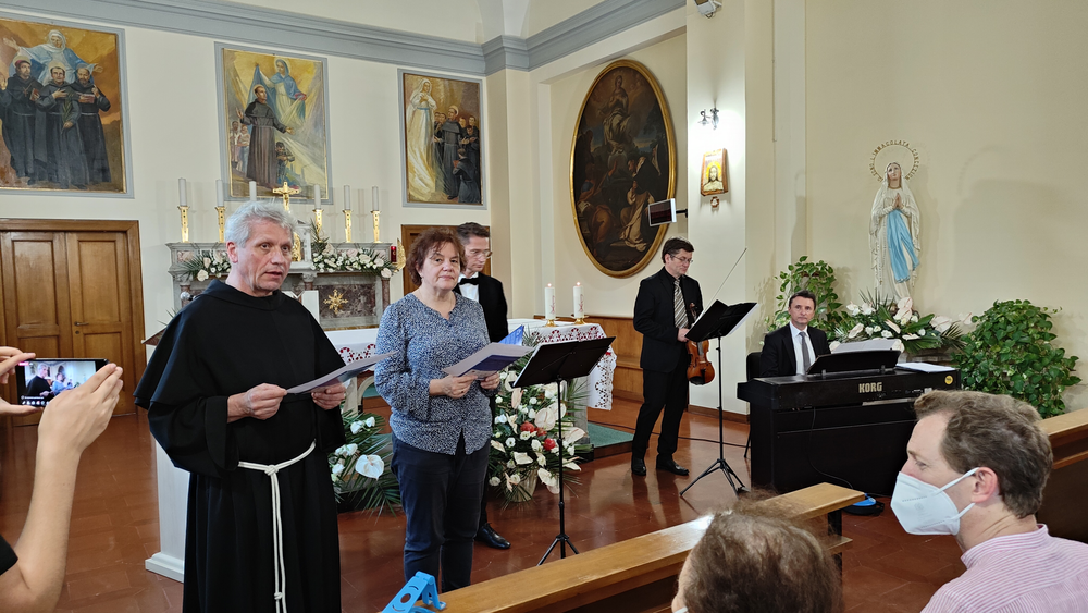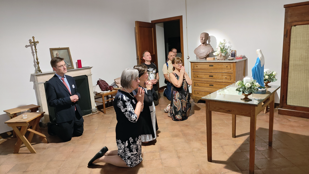 Po południu znowu udaliśmy się do Kaplicy na Casa Kolbe, aby wysłuchać konferencji o. Rafaelle di Muro o św. Maksymilianie Kolbe, a następnie uczestniczyć w uroczystej Mszy św. pod przewodnictwem biskupa miejsca. Koncelebra kilkudziesięciu kapłanów, przybyłych z całego świata, była imponująca i wzmacniała ważność wydarzenia. Po prawdziwej uczcie duchowej - wspólna kolacja i możliwość rozmów, wymiany doświadczeń. Bezcenny czas dla wszystkich.