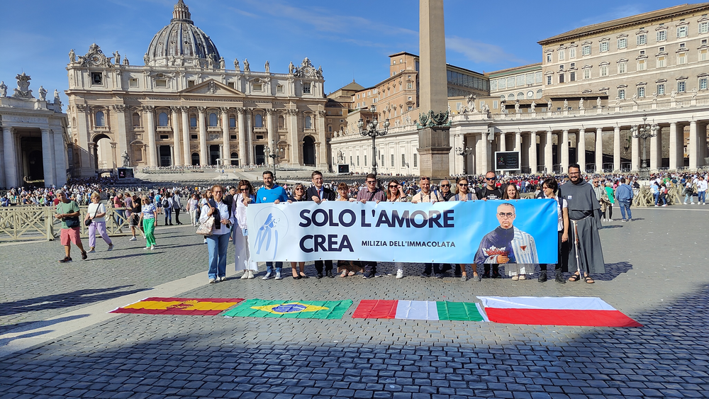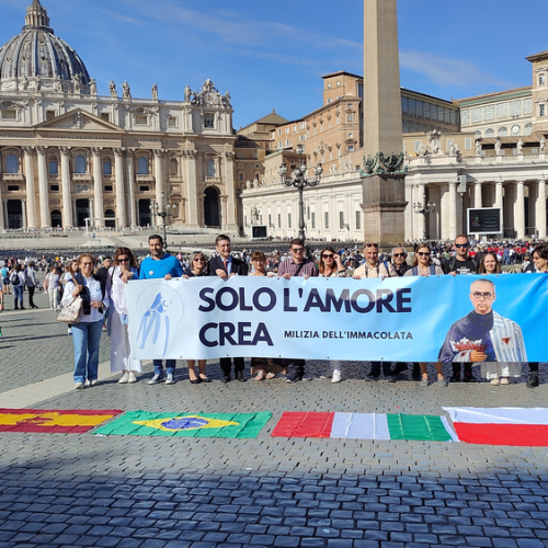 16 października 1982 r. na Placu św. Piotra w Rzymie Ojciec święty Jan Paweł II kanonizował o. Maksymiliana Marię Kolbego. Wyjazd do Rzymu 40 lat później i udział w uroczystościach 40 lecia kanonizacji był potrzebą serca członków MI z Hiszpanii, Brazylii, Włoch i Polski. Nie mogło nas zabraknąć tam - w Rzymie, na Placu św. Piotra.