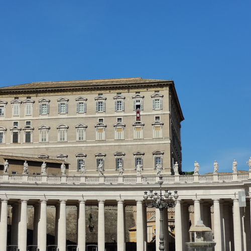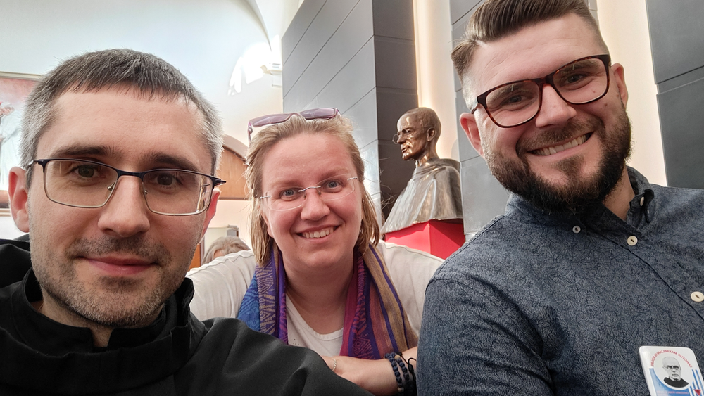 W niedzielę czekały na nas same niespodzianki. O 12.00 zebraliśmy się na Placu św. Piotra na Anioł Pański i po wspólnej modlitwie wysłuchaliśmy wyjątkowych pozdrowień Ojca świętego Franciszka skierowanych do wszystkich rycerzy Niepokalanej świętujących 40 rocznicę kanonizacji św. Maksymiliana. Nie sposób oddać atmosfery tam panującej, wszystkich przygotowań, układania flag narodowych i baneru z cytatem ze św. Maksymiliana: "Tylko miłość jest twórcza", pozdrowień przechodzących ludzi, wiwatów i okrzyków.