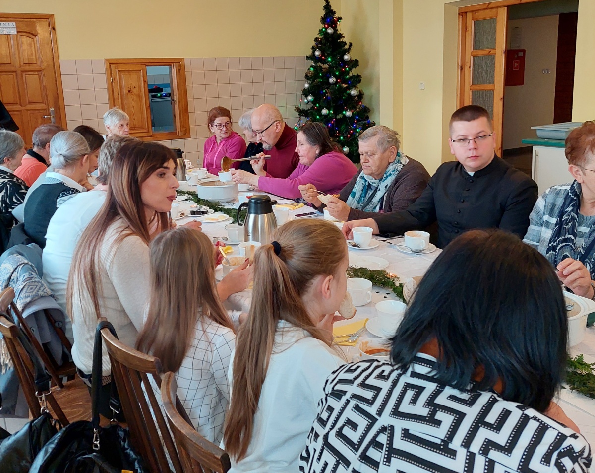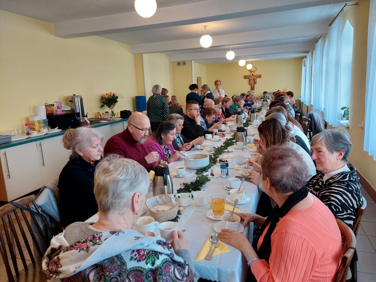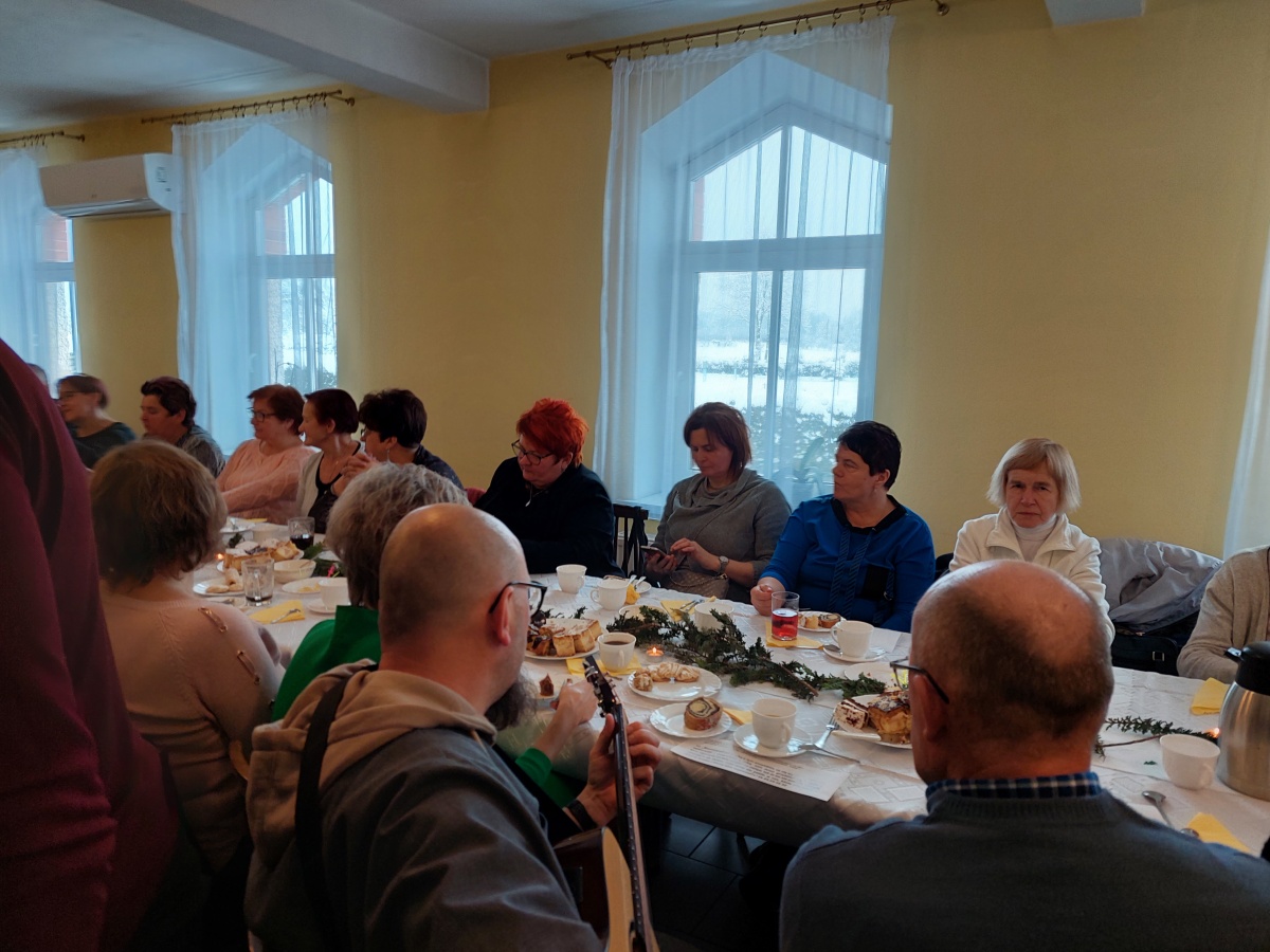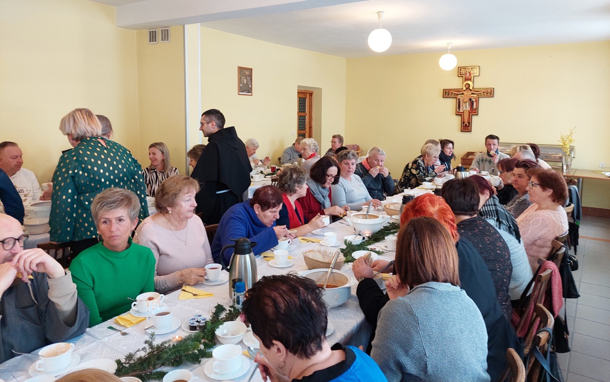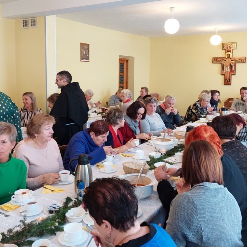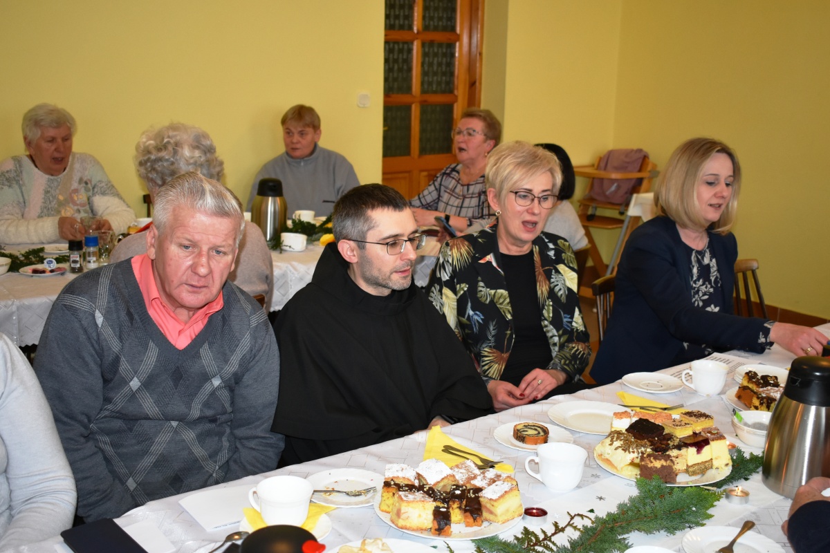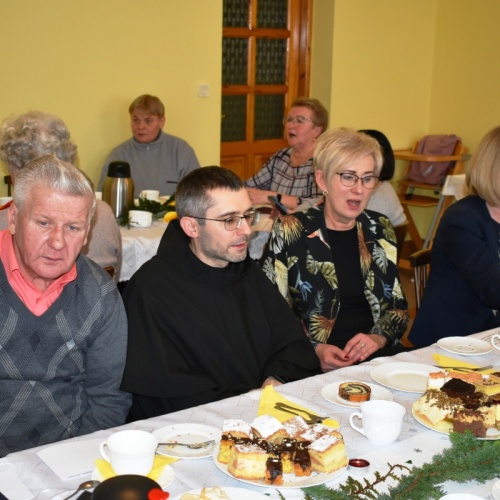 Po Mszy świętej wszyscy zebrali się przy stole w klasztornym refektarzu na wspólnym kolędowaniu.