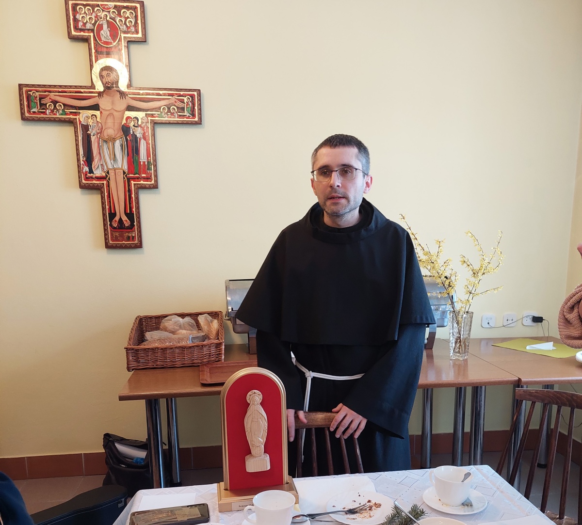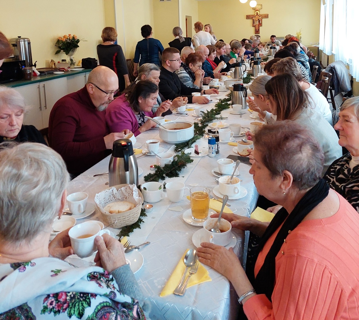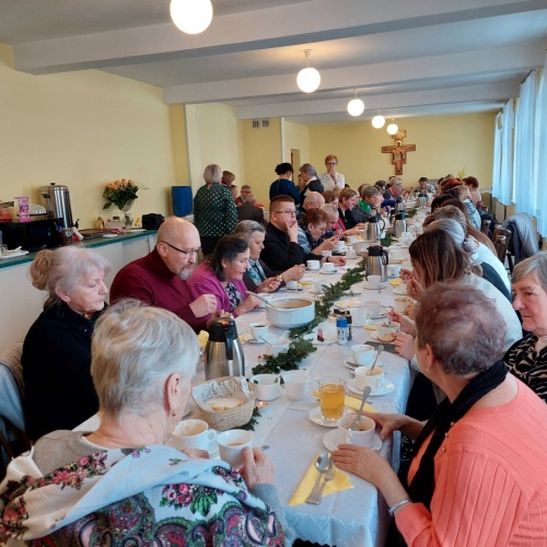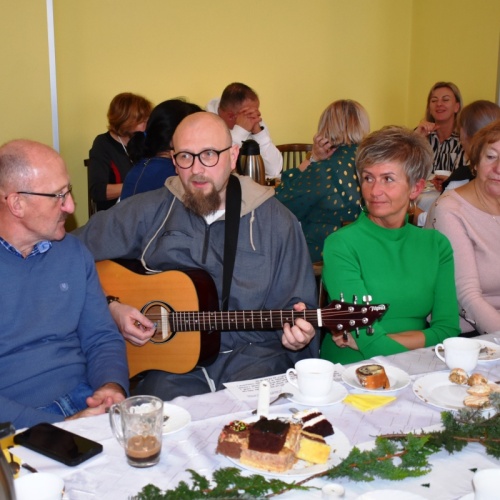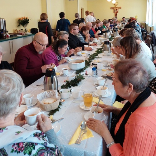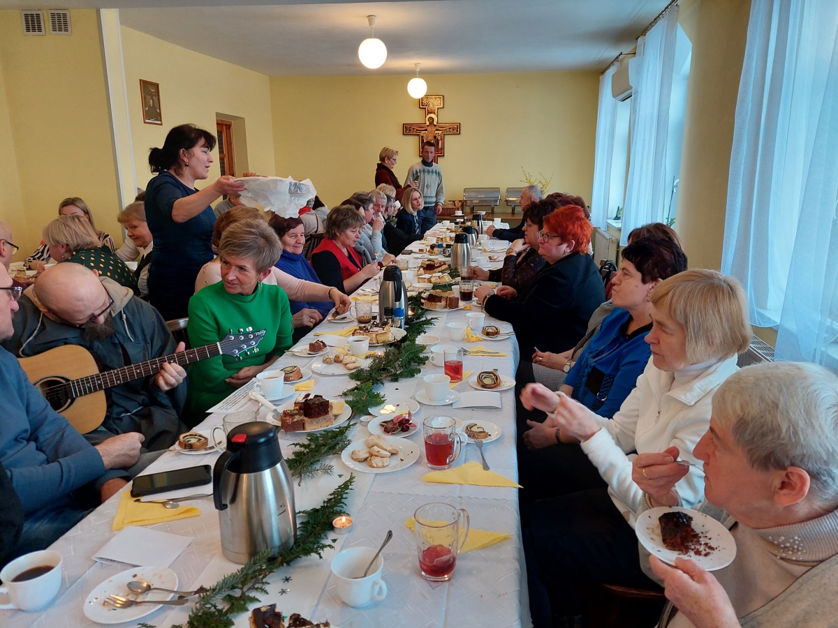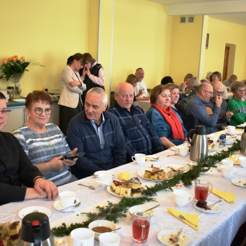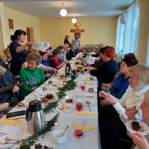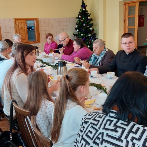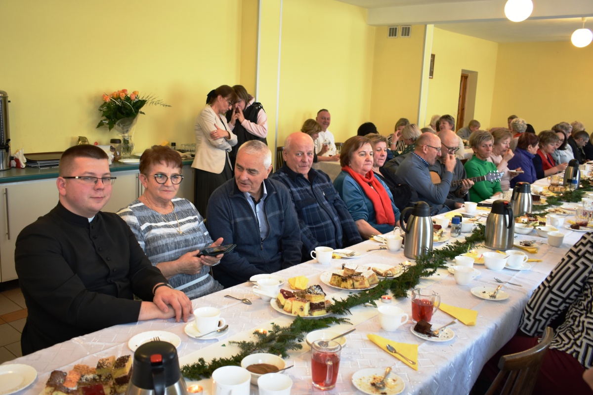 Po Mszy świętej wszyscy zebrali się przy stole w klasztornym refektarzu na wspólnym kolędowaniu.