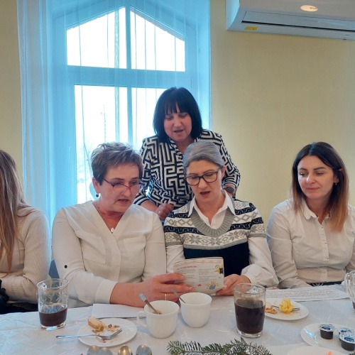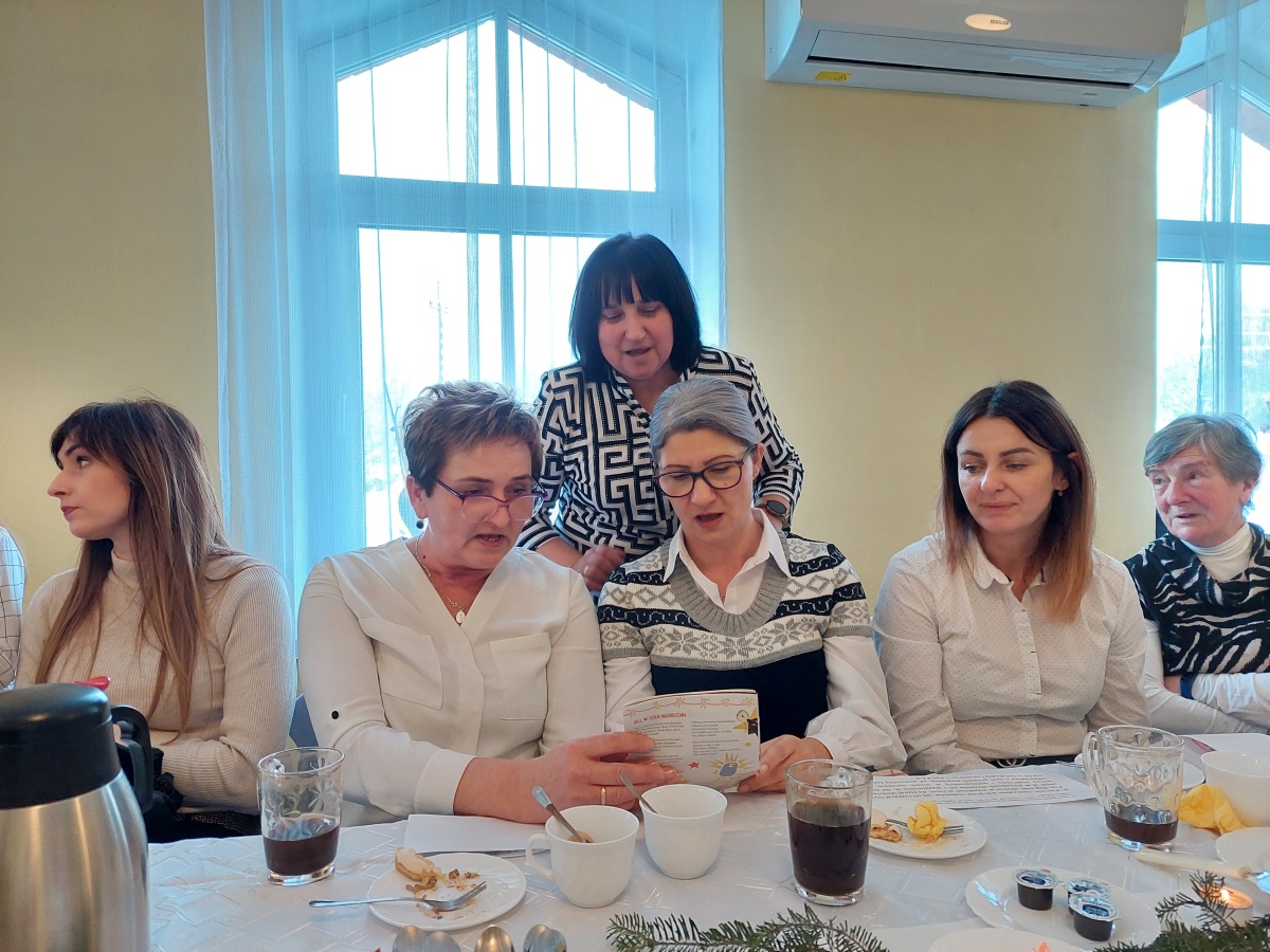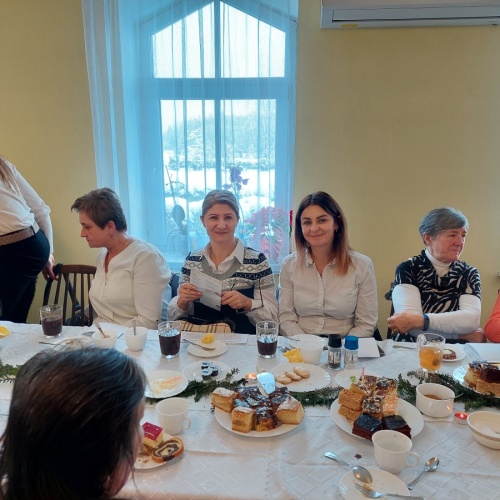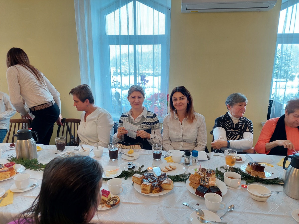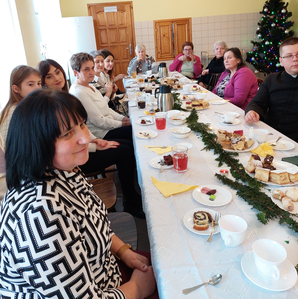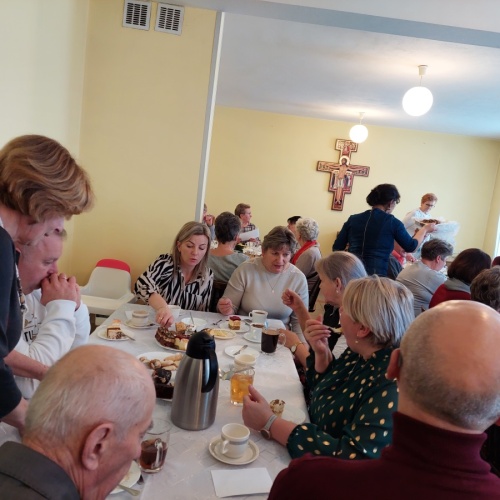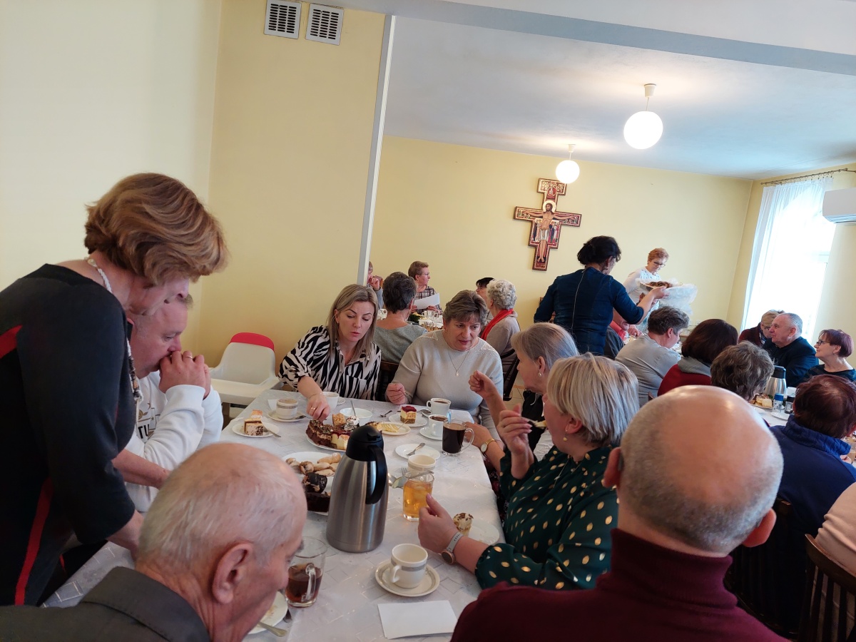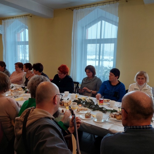Po Mszy świętej wszyscy zebrali się przy stole w klasztornym refektarzu na wspólnym kolędowaniu.