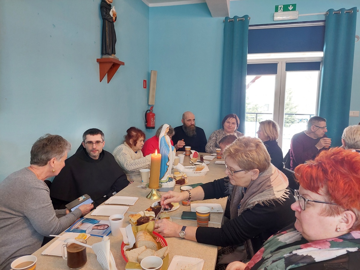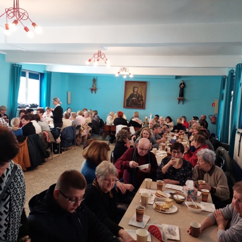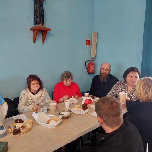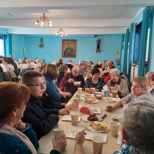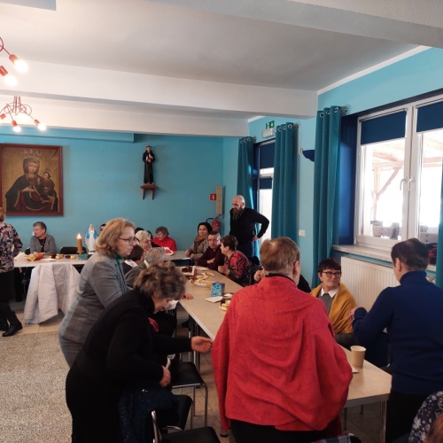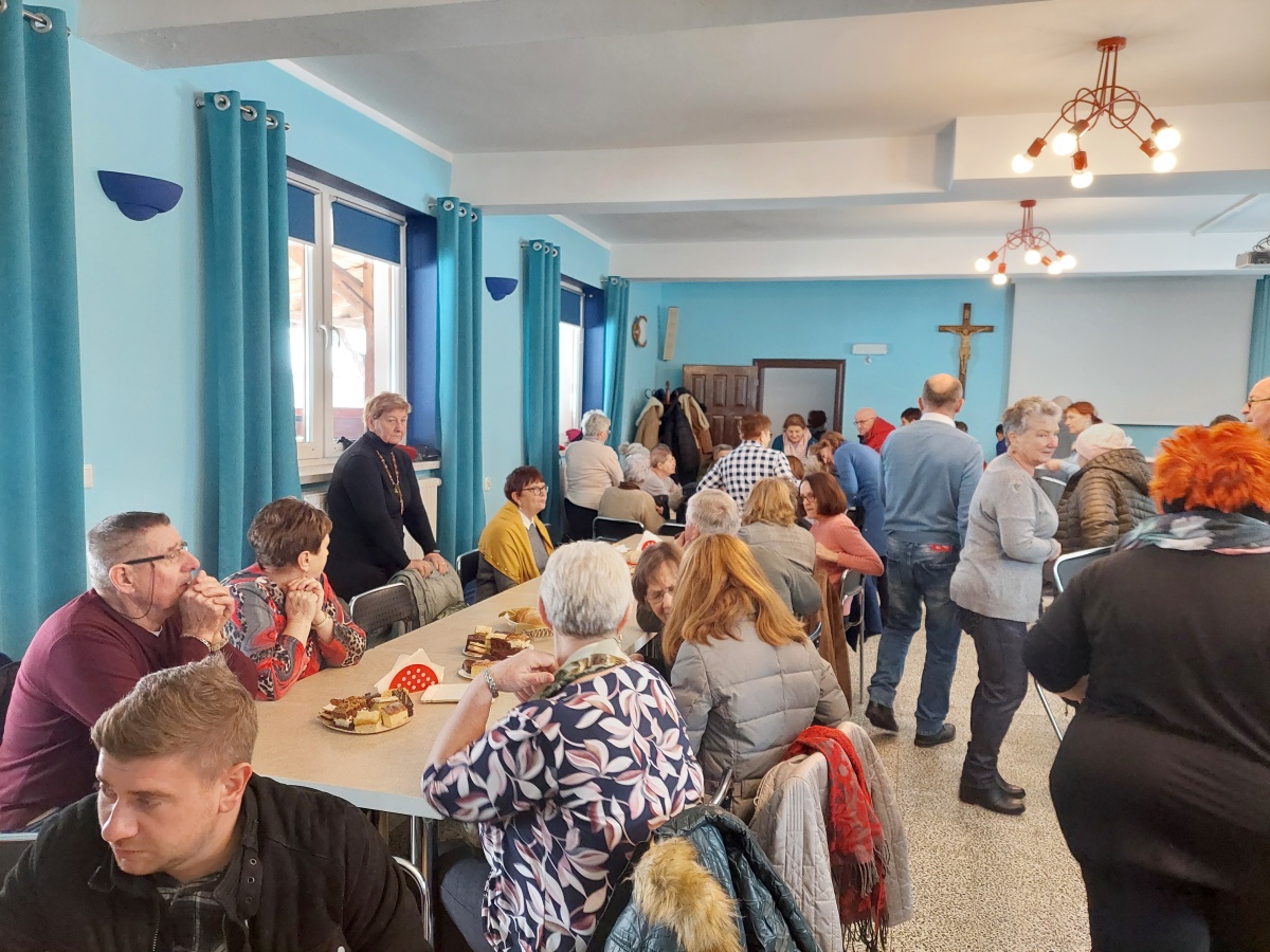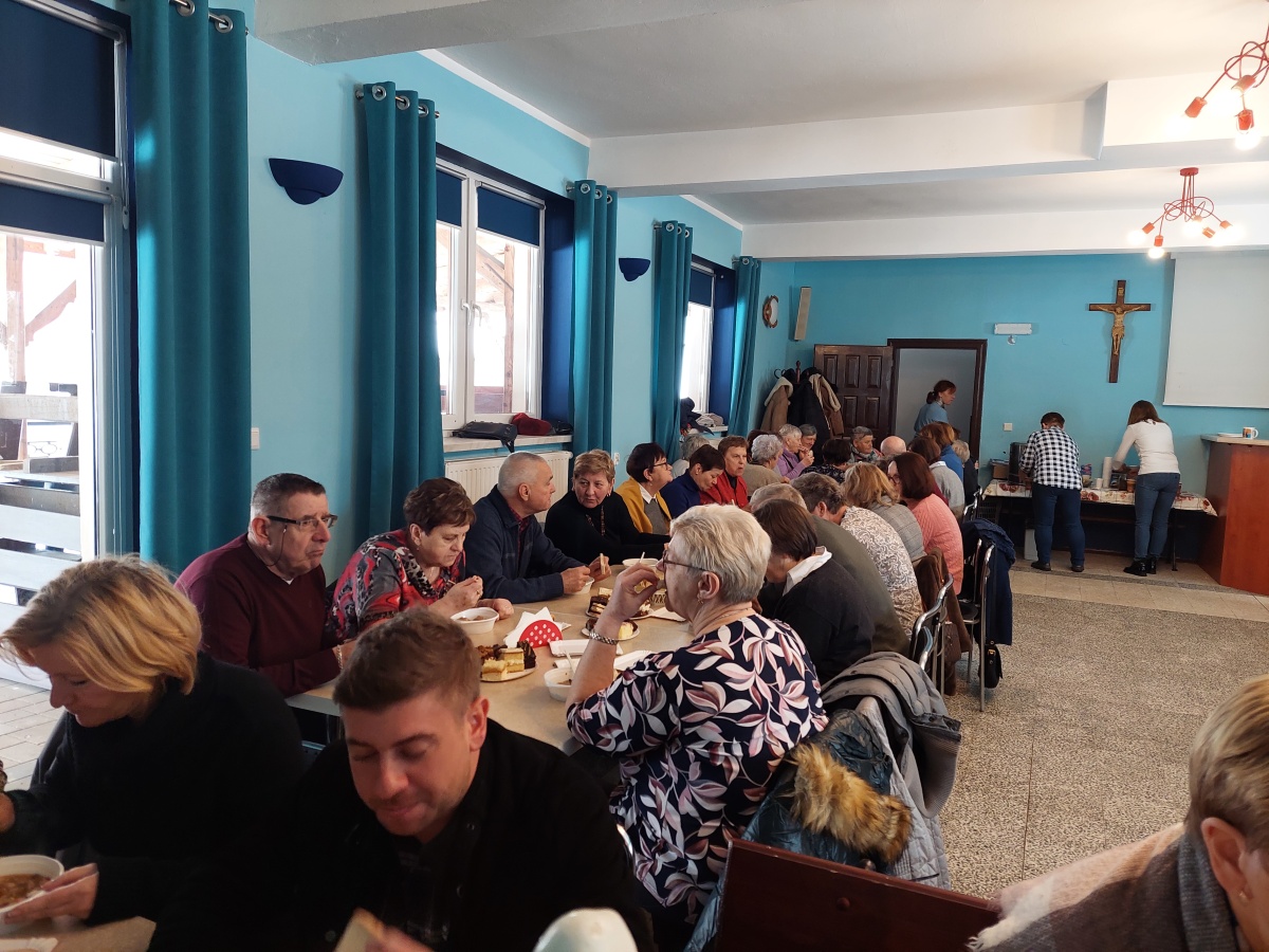 Po tej duchowej uczcie, lokalna wspólnota zaprosiła wszystkich na agapę, gdzie rozmowom nie było końca, a pozytywna energia udzielał się uczestnikom. Dziękujemy wszystkim za obecność - o. Tomaszowi za piękną homilię, o. Arkowi za tę wartościową konferencję, prezesowi MI Grzegorzowi za przygotowania, p. Marii za tradycyjnie już włąsnoręcznie przygotowane karteczki ze Słowem Bożym dla każdego i członkom MI w Rychwałdzie za wyborne ciasta i smatowity gulasz.