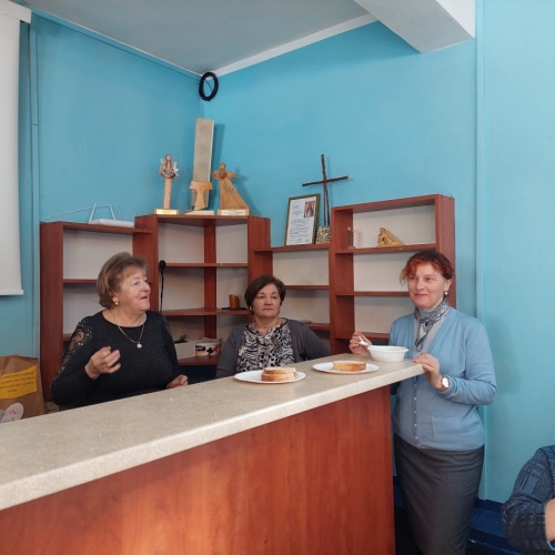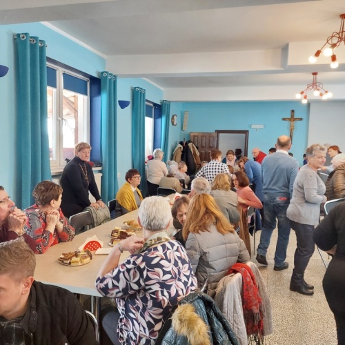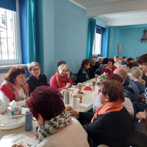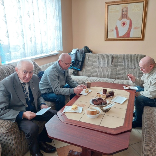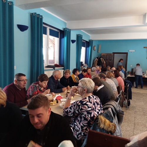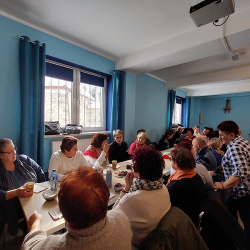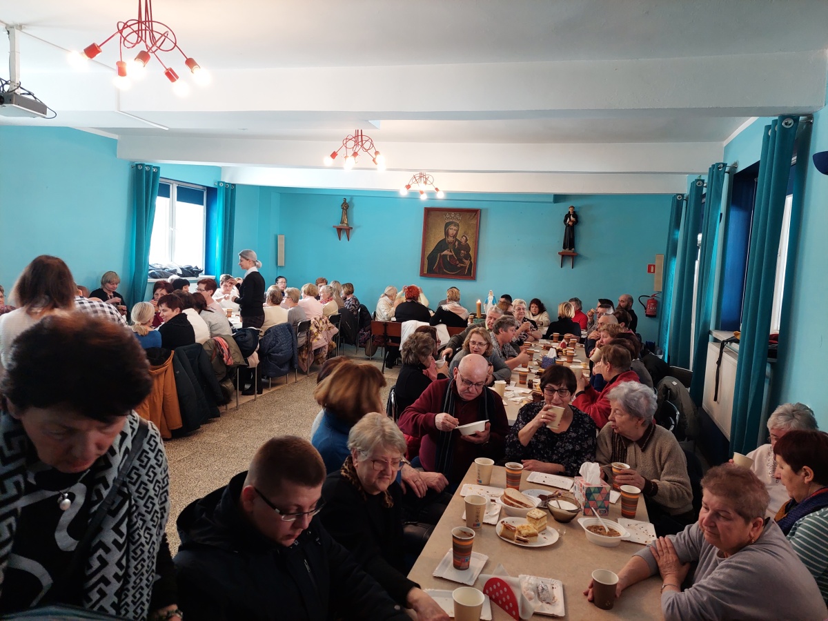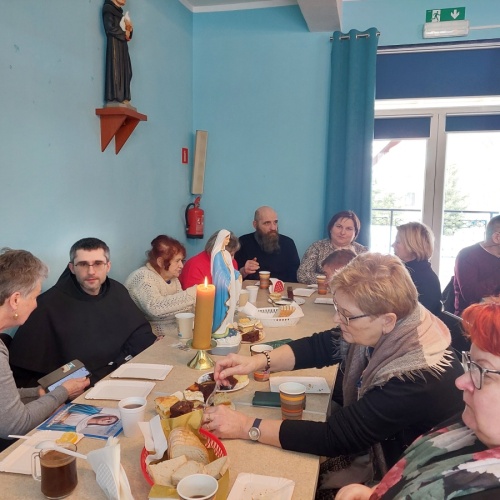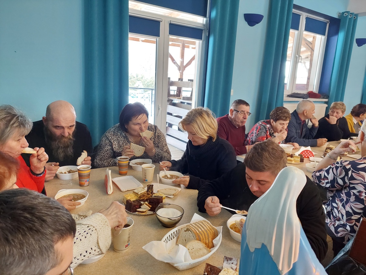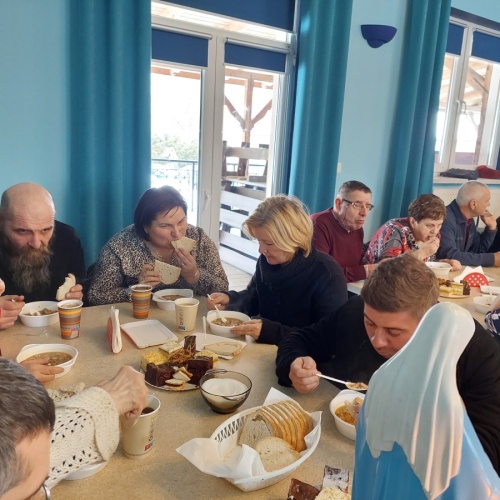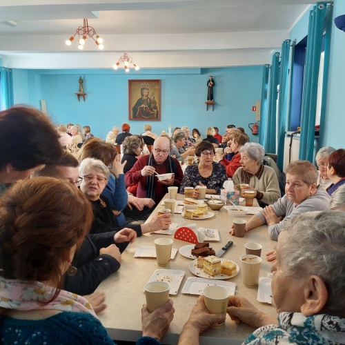 Po tej duchowej uczcie, lokalna wspólnota zaprosiła wszystkich na agapę, gdzie rozmowom nie było końca, a pozytywna energia udzielał się uczestnikom. Dziękujemy wszystkim za obecność - o. Tomaszowi za piękną homilię, o. Arkowi za tę wartościową konferencję, prezesowi MI Grzegorzowi za przygotowania, p. Marii za tradycyjnie już włąsnoręcznie przygotowane karteczki ze Słowem Bożym dla każdego i członkom MI w Rychwałdzie za wyborne ciasta i smatowity gulasz.