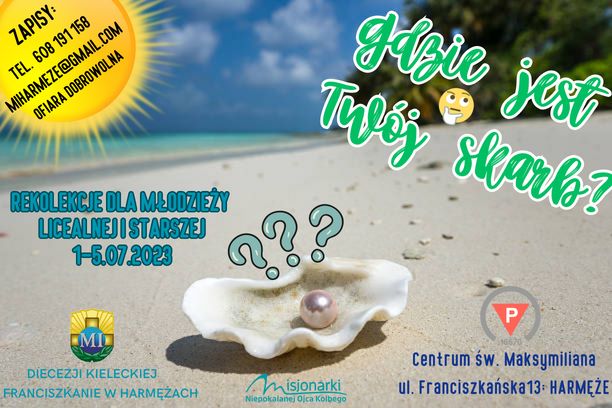 Misjonarki oraz Franciszkanie z Centrum św. Maksymiliana zapraszają na rekolekcje dla młodzieży, które odbędą się w dniach 1 - 5 lipca 2023 w Harmężach.