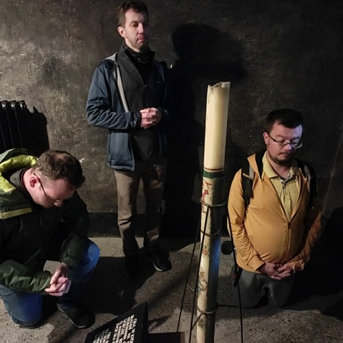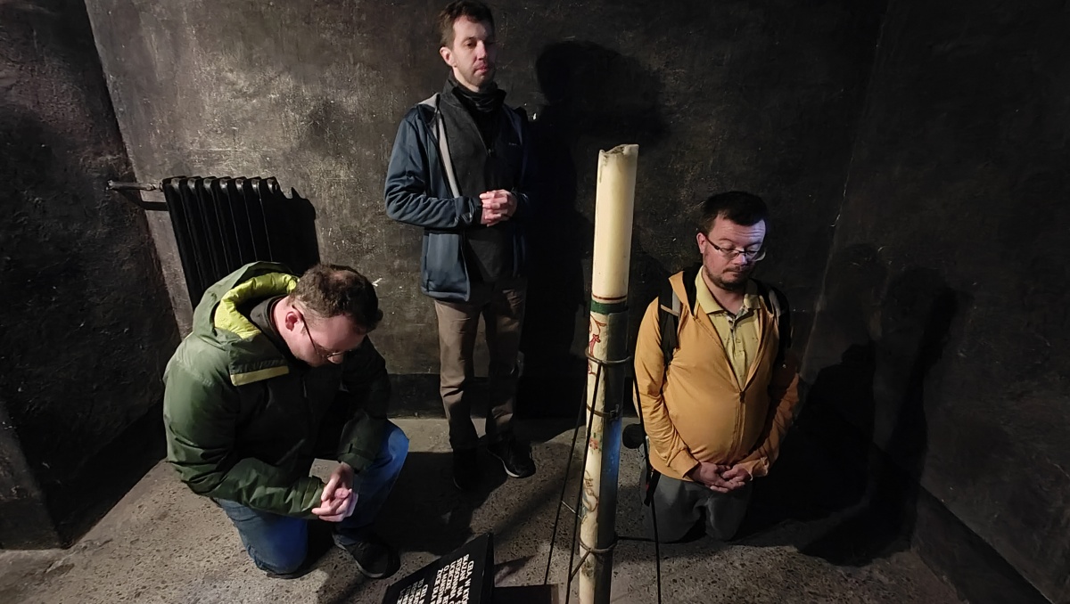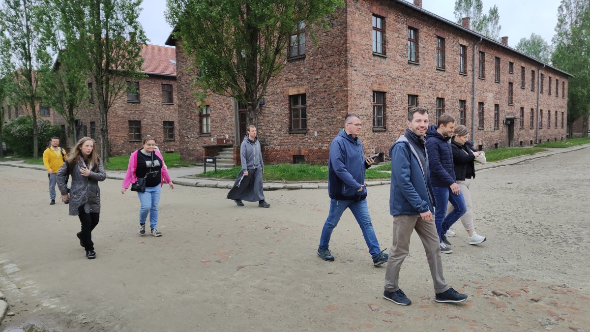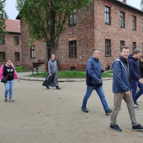 Przede wszystkim jednak nawiedziliśmy celę w obozie Auschwitz, w której umierał św. Maksymilian Kolbe i powierzyliśmy Mu nasze intencje i modlitwy. Pośród murów i ogrodzeń dawnych zabudowań, w których żyli i umierali więźniowie, rozważaliśmy słowa świętego o wewnętrznym zbliżeniu do Niepokalanej: „Bezgraniczna miłość Niepokalanej! Co to jest? Niepokalana jest tak zjednoczona miłością z Bogiem, że wznosi się ponad nie tylko wszystkich świętych, ale i aniołów, więc bezgraniczna miłość ku Niepokalanej podnosi nas aż do Niej. Ona najbardziej zbliżona do Boga, a my najbardziej zbliżeni do Niej, a więc przez Nią do samego Boga. Bóg nam dał tę drabinę białą i chce, byśmy po niej do Niego aż doszli, a raczej by Ona, przytuliwszy nas do swej matczynej piersi, aż do Boga nas przyniosła. Ona naszą duszę przenika i kieruje wszechwładnie jej władzami. My naprawdę Jej. Więc zawsze, wszędzie z Nią. (…) Zniknijmy w Niej. Niech Ona sama pozostanie, a my w Niej, częścią Jej”. Bo jak pisał św. Bonawentura: „Największą ofiarę czyni posłuszny, gdy własną wolę cudzej woli poddaje”. Inny święty tak z kolei przedstawiał natchnienia Ducha Świętego, które możemy przyjąć: „Pan Jezus, który zewnątrz powołuje słowem, wewnątrz niewidzialnym natchnieniem pociąga do pójścia za sobą”. Rozmyślania urozmaicał nam spacer po najbliższej okolicy, wśród malowniczych tafli stawów, lasów i łąk nad Sołą.