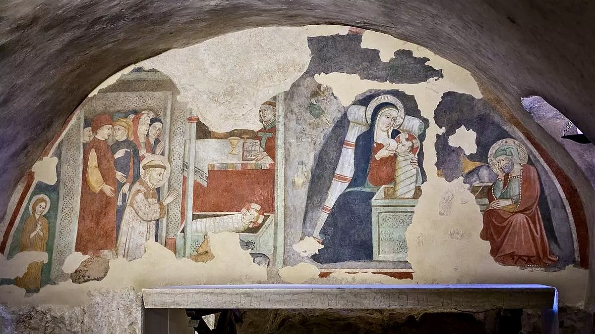 Fresk z Greccio, gdzie 800 lat temu św. Franciszek zbudował pierwszą Szopkę