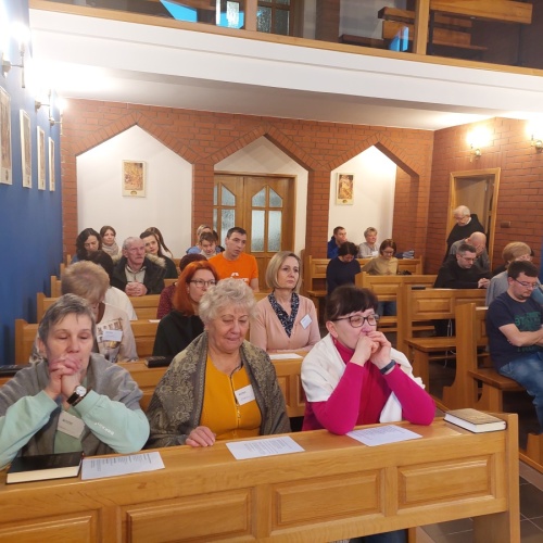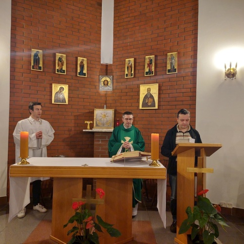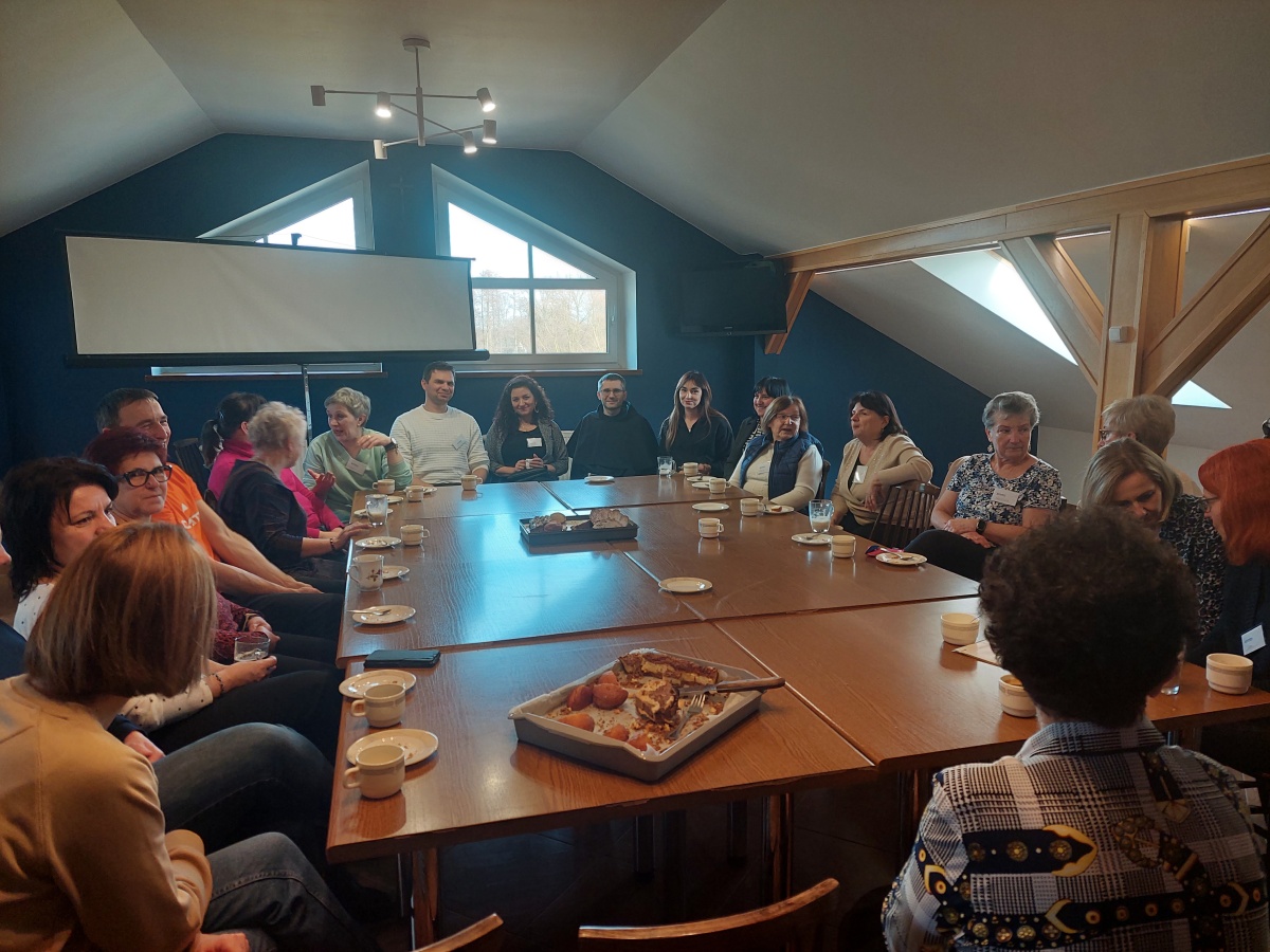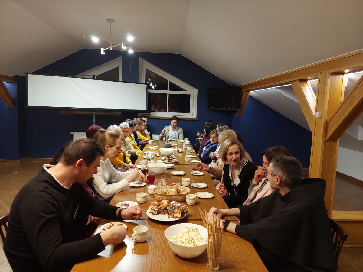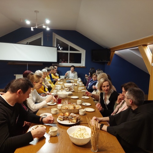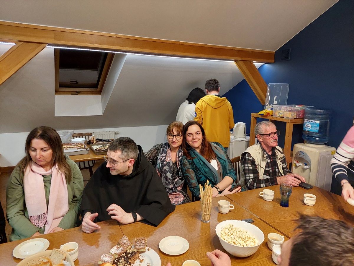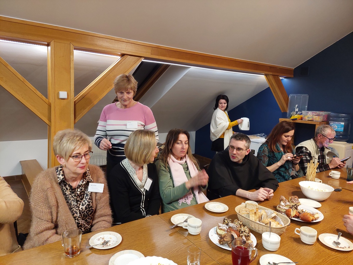 W dniach 9-10 lutego 2024 r. w Centrum św. Maksymiliana w Harmężach uczestnicy II Weekendowego Spotkania Formacyjnego MI, którzy przybyli do Harmęż z wielu stron naszego kraju, nie tylko wysłuchali konferencji o. Arkadiusza Bąka, ale także wzięli udział w warsztatach w oparciu o przygotowane materiały. Tematem lutowego spotkania były słowa Pana Jezusa z mateuszowej Ewangelii: ”Odwagi! Ja jestem, nie bójcie się.” Mt 14,27. Rycerze rozważali dwa fragmenty Ewangelii św. Mateusza: 3, 13 - 17 Chrzest Jezusa oraz 14, 22-33 Jezus chodzi po wodzie a także wybrane teksty z Pism św. Maksymiliana: 882 IV - MI trudności oraz 1062 Któż by śmiał przypuścić? Prace w grupacha, po uprzednim wprowadzenie miały miejsce w drugim dniu spotkania. Pierwszy dzień to udział w Mszy św. połączony z konferencją, Adoracja NS oraz zawiązanie wspólnoty - spotkanie przy wspólnym stole. O. Arkadiusz, który wygłosił swoje konferencje podczas Mszy Świętych w pierwszym i drugim dniu oraz dodatkowej nauce w drugim dniu zwrócił uwagę na istotne aspekty życia rycerza Niepokalanej. "Rycerz Niepokalanej - powiedział o. Arkadiusz - tak jak ten głuchoniemy z dzisiejszej Ewangelii - potrzebuje zmysłów słuchu i mowy". Zdaje się, że on sam nie odczuwał potrzeby uzdrowienia, ponieważ sam nie przyszedł do Jezusa, został doprowadzony przez swoich znajomych - to kolejne zadania lidera i każdego rycerza Niepokalanej - przyprowadzać do Jezusa przez Niepokalaną. Wskazówką dla nas jest także to, że Jezus bierze tego człowieka na bok i tam go uzdrawia - nie możemy wykonywać swoich zadań na pokaz. Mamy wchodzić, jak Jezus, w relację z drugim człowiekiem, nikogo nie odrzucać. Jako duchowe dzieci Maksymiliana powinniśmy wchodzić w myślenie Boga. To miłość jest twórcza, nienawiść prowadzi donikąd - powiedział za św. Maksymilianem o. Arkadiusz. Niezwykle wymownym gestem Jezusa jest zwrócenie wzroku ku górze i wypowiedzenie słów: effata - otwórz się -. Jezus tym gestem pokazuje nam źródło łaski, które pochodzi od Ojca na nas. "Prośmy, abyśmy w pierwszej kolejności, zanim cokolwiek do kogoś powiedziemy, słuchali, abyśmy usłyszeli nad sobą słowa Jezusa: "effata - otwórz się" - zwrócił się do wszystkich uczestników o. Arkadiusz. W drugim dniu w swojej pierwszej konferencji o. Arkadiusz odnosząc się do Ewangelii z dnia zwraca naszą uwagę na 4 istotne jej aspekty: "1. litość Boga - Jezus lituje się nad swoimi uczniami, 2. trwanie przy Jezusie, - Jezus lituje się bo Jego uczeń jest przy nim, Jezus nas nigdy nie zostawi, zawsze jest przy nas. 3. Jezus jest pokarmem, prowadzi nas do stołu, do wspólnoty, dzisiaj dzieli się z nami sobą - jeśli Jezus nic nie zrobi w naszym życiu, ustaniemy w drodze, zasłabnę - przede wszystkim duchowo. Zatem trwajmy przy Nim. Może się jednak wkraść w moje życie wątpliwość, mogę nawet doświadczać cudów, a i tak przy braku czujności mogę zwątpić. 4. Jezus stawia pytanie: Ile macie chlebów? Dzisiaj Jezus może to pytanie postawić każdemu z nas: ile posiadasz darów, ile talentów ludzkich? I to w zestawieniu z potrzebami jest pewnie bardzo niewiele, ale Jezus mówi, aby przynieść Mu to moje "nic" to moje "niewiele", by przyjąć od Niego jeszcze więcej. By cud mógł się stać, potrzba jest coś dać, nawet to niewiele" - powiedział kaznodzieja. W drugiej konferencji o. Arkadiusz razem ze św.Maksymilianem analizuje trudności, jakie napotykamy i napotykać będziemy na naszej drodze. Kluczem ich przezywyciężenia jest zrozumienie i niezniechęcanie się, ale ufne zwracanie się do Niepokalanej - Wszechpośredniczki łask, we wszystkich trudnościach.