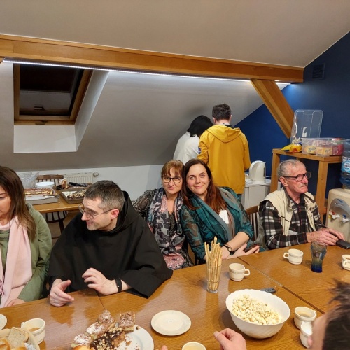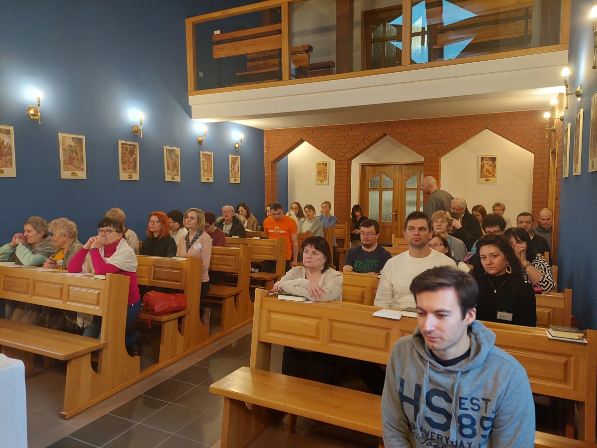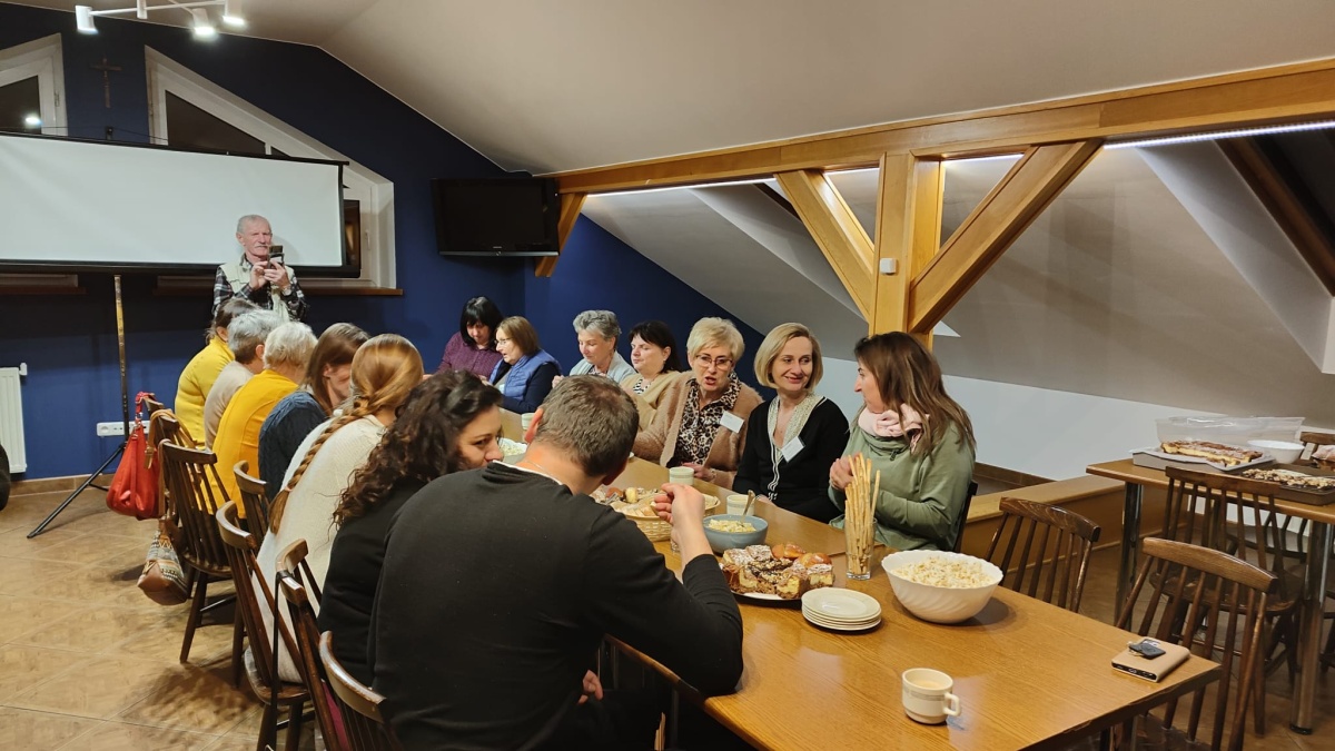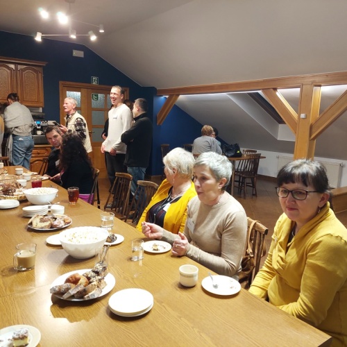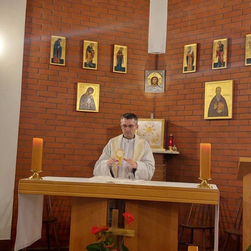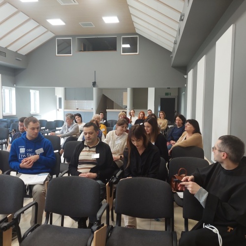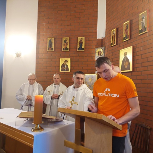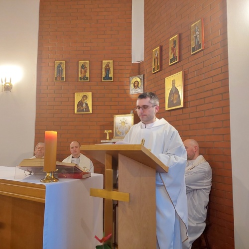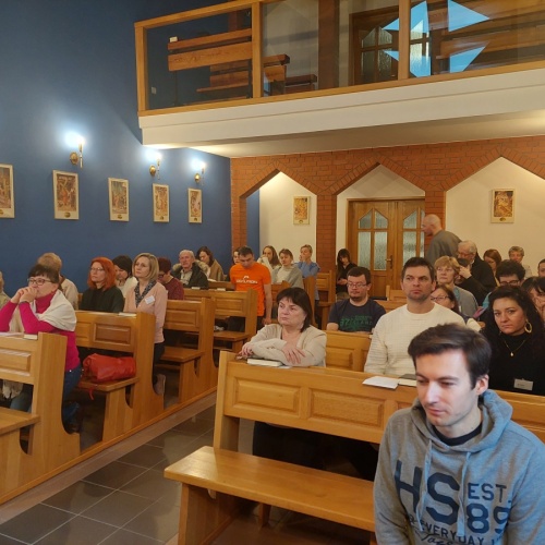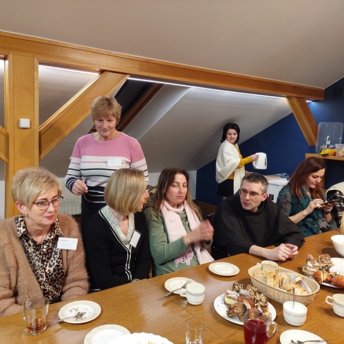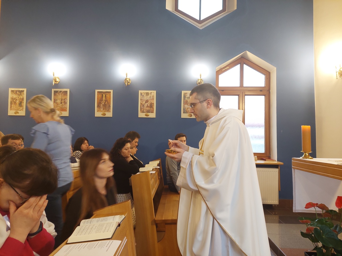W dniach 9-10 lutego 2024 r. w Centrum św. Maksymiliana w Harmężach uczestnicy II Weekendowego Spotkania Formacyjnego MI, którzy przybyli do Harmęż z wielu stron naszego kraju, nie tylko wysłuchali konferencji o. Arkadiusza Bąka, ale także wzięli udział w warsztatach w oparciu o przygotowane materiały. Tematem lutowego spotkania były słowa Pana Jezusa z mateuszowej Ewangelii: ”Odwagi! Ja jestem, nie bójcie się.” Mt 14,27. Rycerze rozważali dwa fragmenty Ewangelii św. Mateusza: 3, 13 - 17 Chrzest Jezusa oraz 14, 22-33 Jezus chodzi po wodzie a także wybrane teksty z Pism św. Maksymiliana: 882 IV - MI trudności oraz 1062 Któż by śmiał przypuścić? Prace w grupacha, po uprzednim wprowadzenie miały miejsce w drugim dniu spotkania. Pierwszy dzień to udział w Mszy św. połączony z konferencją, Adoracja NS oraz zawiązanie wspólnoty - spotkanie przy wspólnym stole. O. Arkadiusz, który wygłosił swoje konferencje podczas Mszy Świętych w pierwszym i drugim dniu oraz dodatkowej nauce w drugim dniu zwrócił uwagę na istotne aspekty życia rycerza Niepokalanej. "Rycerz Niepokalanej - powiedział o. Arkadiusz - tak jak ten głuchoniemy z dzisiejszej Ewangelii - potrzebuje zmysłów słuchu i mowy". Zdaje się, że on sam nie odczuwał potrzeby uzdrowienia, ponieważ sam nie przyszedł do Jezusa, został doprowadzony przez swoich znajomych - to kolejne zadania lidera i każdego rycerza Niepokalanej - przyprowadzać do Jezusa przez Niepokalaną. Wskazówką dla nas jest także to, że Jezus bierze tego człowieka na bok i tam go uzdrawia - nie możemy wykonywać swoich zadań na pokaz. Mamy wchodzić, jak Jezus, w relację z drugim człowiekiem, nikogo nie odrzucać. Jako duchowe dzieci Maksymiliana powinniśmy wchodzić w myślenie Boga. To miłość jest twórcza, nienawiść prowadzi donikąd - powiedział za św. Maksymilianem o. Arkadiusz. Niezwykle wymownym gestem Jezusa jest zwrócenie wzroku ku górze i wypowiedzenie słów: effata - otwórz się -. Jezus tym gestem pokazuje nam źródło łaski, które pochodzi od Ojca na nas. "Prośmy, abyśmy w pierwszej kolejności, zanim cokolwiek do kogoś powiedziemy, słuchali, abyśmy usłyszeli nad sobą słowa Jezusa: "effata - otwórz się" - zwrócił się do wszystkich uczestników o. Arkadiusz. W drugim dniu w swojej pierwszej konferencji o. Arkadiusz odnosząc się do Ewangelii z dnia zwraca naszą uwagę na 4 istotne jej aspekty: "1. litość Boga - Jezus lituje się nad swoimi uczniami, 2. trwanie przy Jezusie, - Jezus lituje się bo Jego uczeń jest przy nim, Jezus nas nigdy nie zostawi, zawsze jest przy nas. 3. Jezus jest pokarmem, prowadzi nas do stołu, do wspólnoty, dzisiaj dzieli się z nami sobą - jeśli Jezus nic nie zrobi w naszym życiu, ustaniemy w drodze, zasłabnę - przede wszystkim duchowo. Zatem trwajmy przy Nim. Może się jednak wkraść w moje życie wątpliwość, mogę nawet doświadczać cudów, a i tak przy braku czujności mogę zwątpić. 4. Jezus stawia pytanie: Ile macie chlebów? Dzisiaj Jezus może to pytanie postawić każdemu z nas: ile posiadasz darów, ile talentów ludzkich? I to w zestawieniu z potrzebami jest pewnie bardzo niewiele, ale Jezus mówi, aby przynieść Mu to moje "nic" to moje "niewiele", by przyjąć od Niego jeszcze więcej. By cud mógł się stać, potrzba jest coś dać, nawet to niewiele" - powiedział kaznodzieja. W drugiej konferencji o. Arkadiusz razem ze św.Maksymilianem analizuje trudności, jakie napotykamy i napotykać będziemy na naszej drodze. Kluczem ich przezywyciężenia jest zrozumienie i niezniechęcanie się, ale ufne zwracanie się do Niepokalanej - Wszechpośredniczki łask, we wszystkich trudnościach.