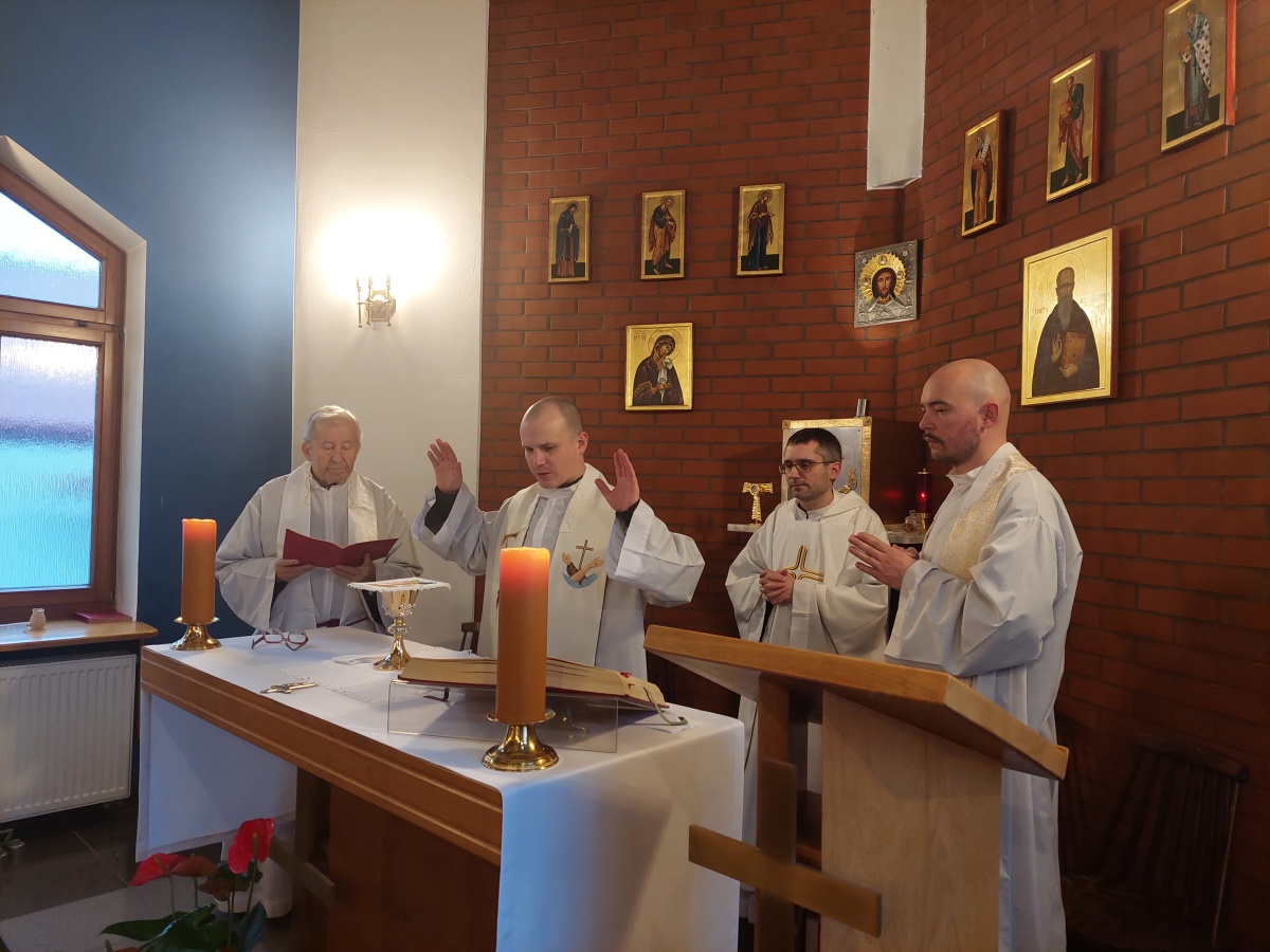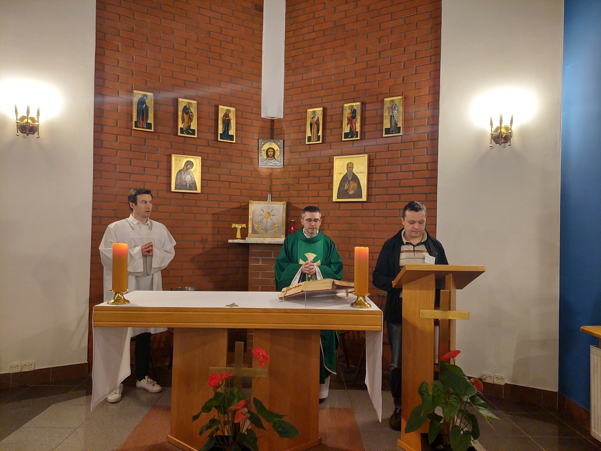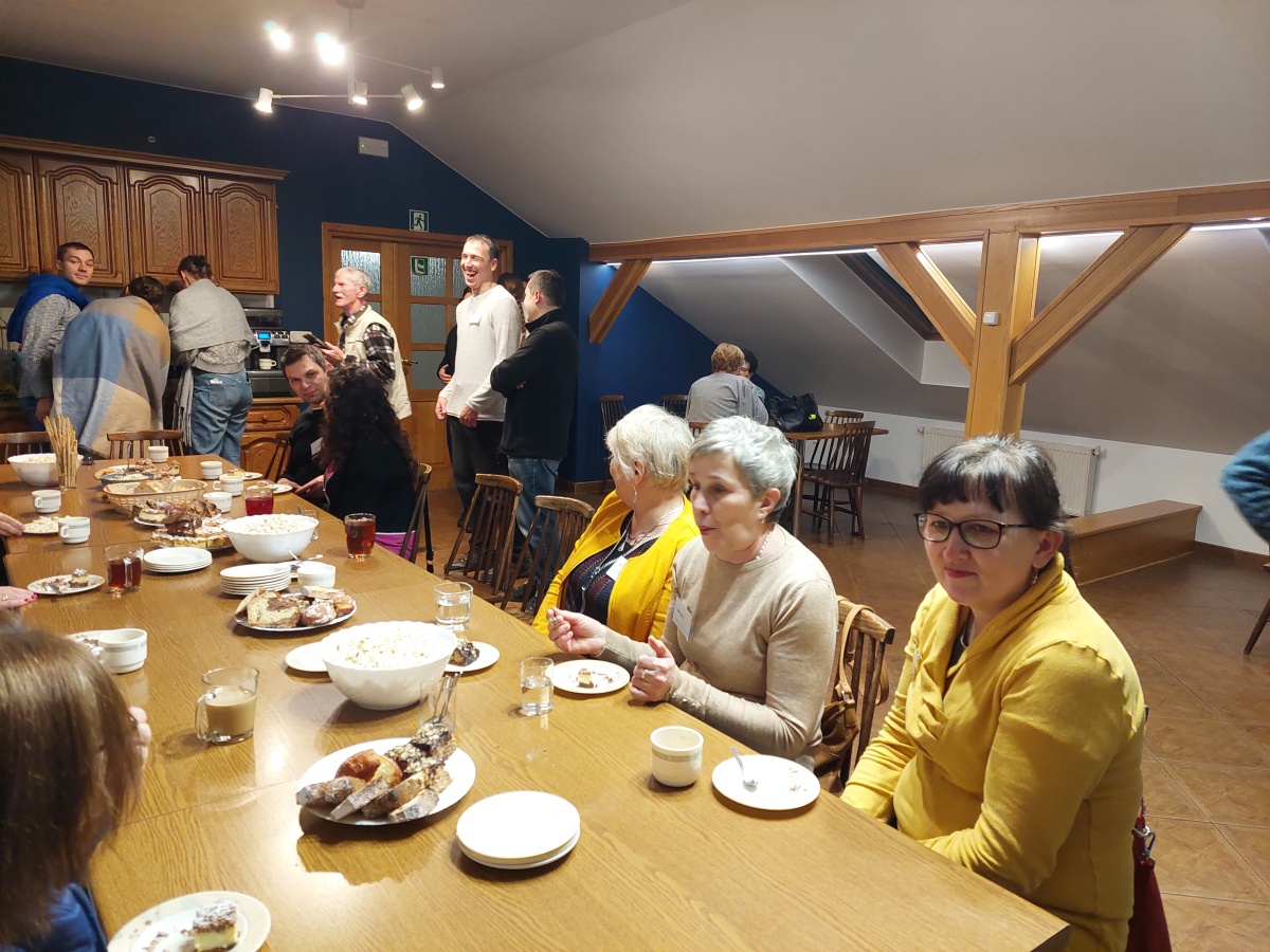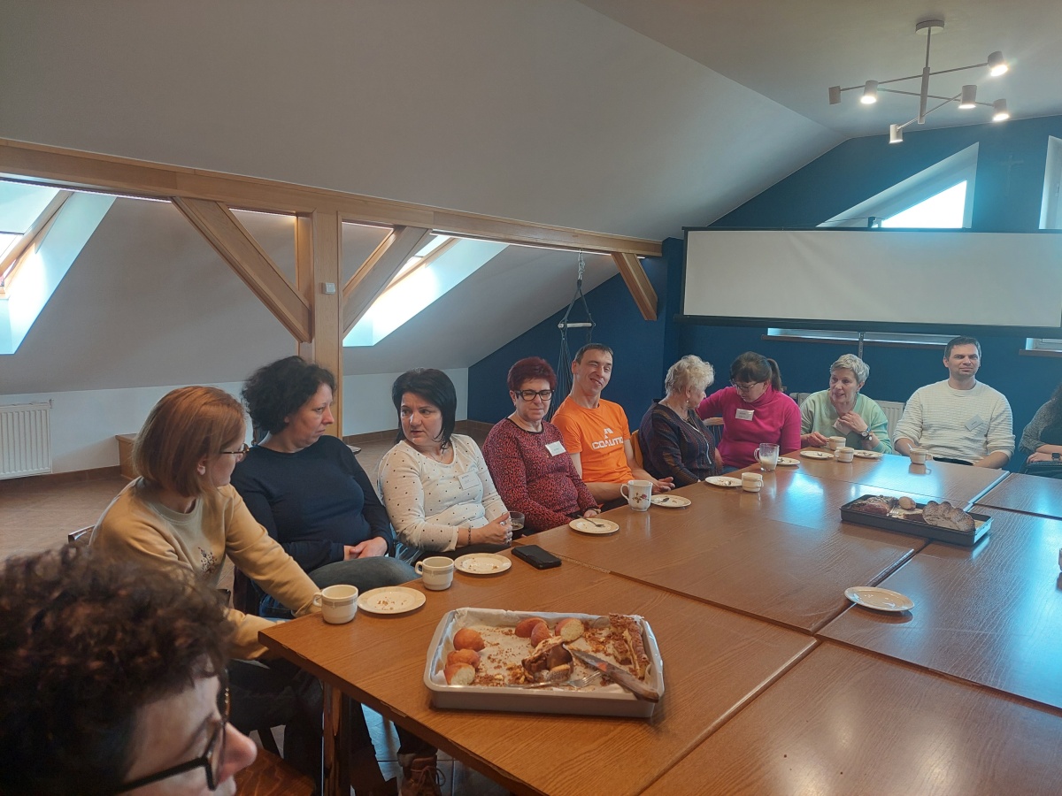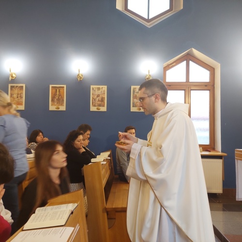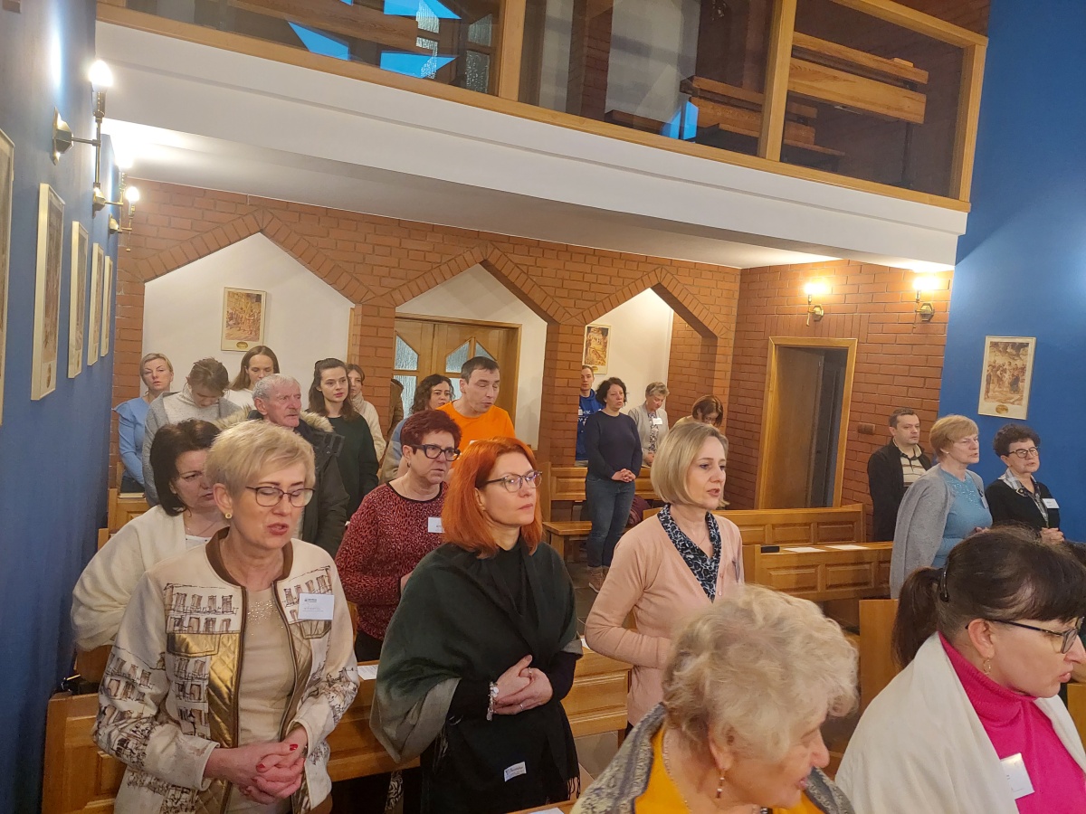 W dniach 9-10 lutego 2024 r. w Centrum św. Maksymiliana w Harmężach uczestnicy II Weekendowego Spotkania Formacyjnego MI, którzy przybyli do Harmęż z wielu stron naszego kraju, nie tylko wysłuchali konferencji o. Arkadiusza Bąka, ale także wzięli udział w warsztatach w oparciu o przygotowane materiały. Tematem lutowego spotkania były słowa Pana Jezusa z mateuszowej Ewangelii: ”Odwagi! Ja jestem, nie bójcie się.” Mt 14,27. Rycerze rozważali dwa fragmenty Ewangelii św. Mateusza: 3, 13 - 17 Chrzest Jezusa oraz 14, 22-33 Jezus chodzi po wodzie a także wybrane teksty z Pism św. Maksymiliana: 882 IV - MI trudności oraz 1062 Któż by śmiał przypuścić? Prace w grupacha, po uprzednim wprowadzenie miały miejsce w drugim dniu spotkania. Pierwszy dzień to udział w Mszy św. połączony z konferencją, Adoracja NS oraz zawiązanie wspólnoty - spotkanie przy wspólnym stole. O. Arkadiusz, który wygłosił swoje konferencje podczas Mszy Świętych w pierwszym i drugim dniu oraz dodatkowej nauce w drugim dniu zwrócił uwagę na istotne aspekty życia rycerza Niepokalanej. "Rycerz Niepokalanej - powiedział o. Arkadiusz - tak jak ten głuchoniemy z dzisiejszej Ewangelii - potrzebuje zmysłów słuchu i mowy". Zdaje się, że on sam nie odczuwał potrzeby uzdrowienia, ponieważ sam nie przyszedł do Jezusa, został doprowadzony przez swoich znajomych - to kolejne zadania lidera i każdego rycerza Niepokalanej - przyprowadzać do Jezusa przez Niepokalaną. Wskazówką dla nas jest także to, że Jezus bierze tego człowieka na bok i tam go uzdrawia - nie możemy wykonywać swoich zadań na pokaz. Mamy wchodzić, jak Jezus, w relację z drugim człowiekiem, nikogo nie odrzucać. Jako duchowe dzieci Maksymiliana powinniśmy wchodzić w myślenie Boga. To miłość jest twórcza, nienawiść prowadzi donikąd - powiedział za św. Maksymilianem o. Arkadiusz. Niezwykle wymownym gestem Jezusa jest zwrócenie wzroku ku górze i wypowiedzenie słów: effata - otwórz się -. Jezus tym gestem pokazuje nam źródło łaski, które pochodzi od Ojca na nas. "Prośmy, abyśmy w pierwszej kolejności, zanim cokolwiek do kogoś powiedziemy, słuchali, abyśmy usłyszeli nad sobą słowa Jezusa: "effata - otwórz się" - zwrócił się do wszystkich uczestników o. Arkadiusz. W drugim dniu w swojej pierwszej konferencji o. Arkadiusz odnosząc się do Ewangelii z dnia zwraca naszą uwagę na 4 istotne jej aspekty: "1. litość Boga - Jezus lituje się nad swoimi uczniami, 2. trwanie przy Jezusie, - Jezus lituje się bo Jego uczeń jest przy nim, Jezus nas nigdy nie zostawi, zawsze jest przy nas. 3. Jezus jest pokarmem, prowadzi nas do stołu, do wspólnoty, dzisiaj dzieli się z nami sobą - jeśli Jezus nic nie zrobi w naszym życiu, ustaniemy w drodze, zasłabnę - przede wszystkim duchowo. Zatem trwajmy przy Nim. Może się jednak wkraść w moje życie wątpliwość, mogę nawet doświadczać cudów, a i tak przy braku czujności mogę zwątpić. 4. Jezus stawia pytanie: Ile macie chlebów? Dzisiaj Jezus może to pytanie postawić każdemu z nas: ile posiadasz darów, ile talentów ludzkich? I to w zestawieniu z potrzebami jest pewnie bardzo niewiele, ale Jezus mówi, aby przynieść Mu to moje "nic" to moje "niewiele", by przyjąć od Niego jeszcze więcej. By cud mógł się stać, potrzba jest coś dać, nawet to niewiele" - powiedział kaznodzieja. W drugiej konferencji o. Arkadiusz razem ze św.Maksymilianem analizuje trudności, jakie napotykamy i napotykać będziemy na naszej drodze. Kluczem ich przezywyciężenia jest zrozumienie i niezniechęcanie się, ale ufne zwracanie się do Niepokalanej - Wszechpośredniczki łask, we wszystkich trudnościach.