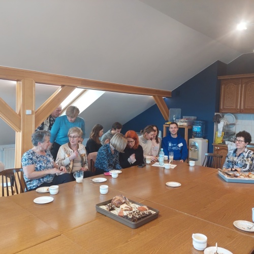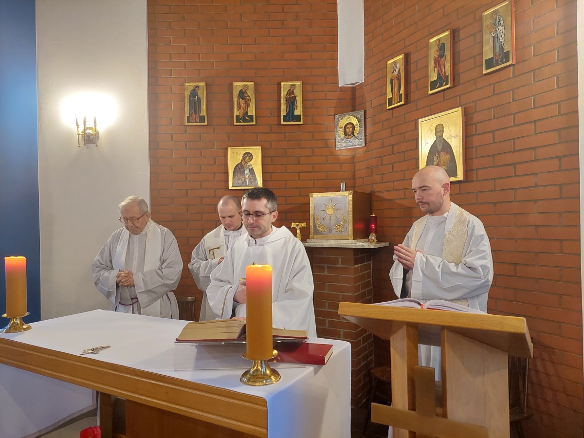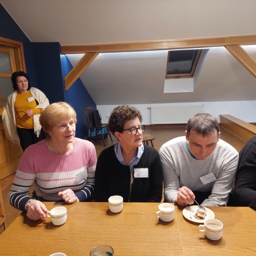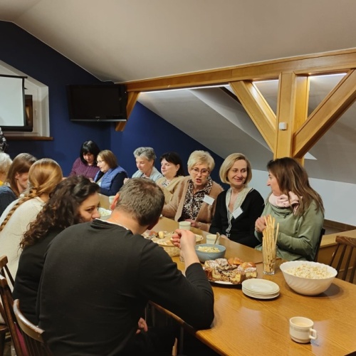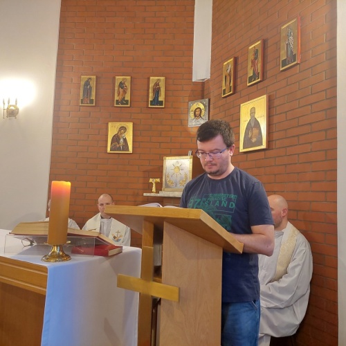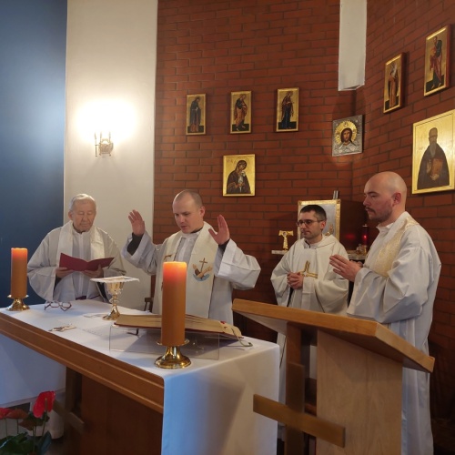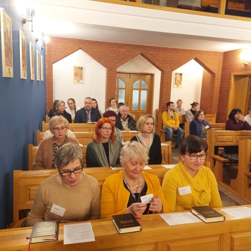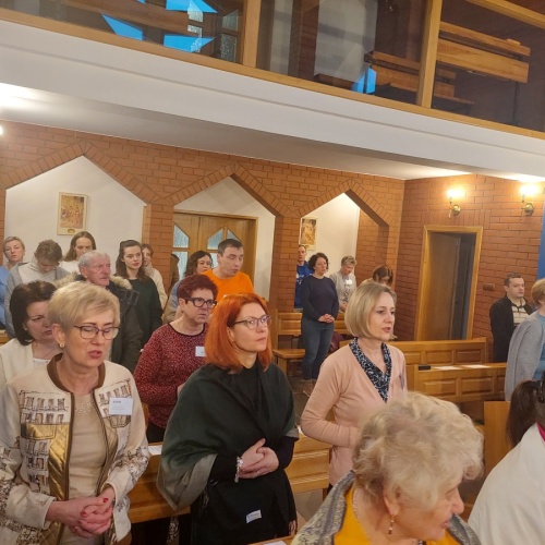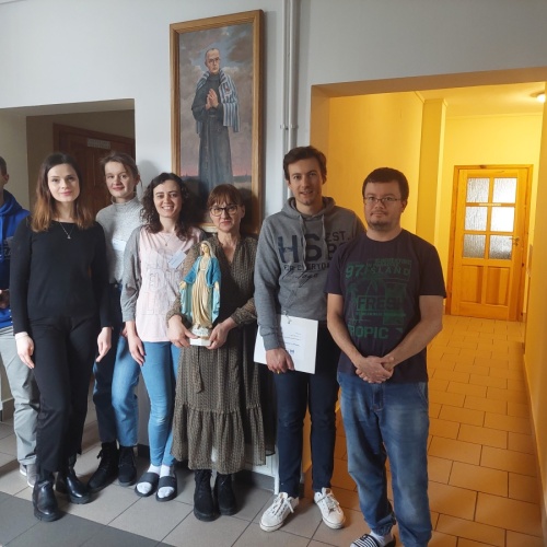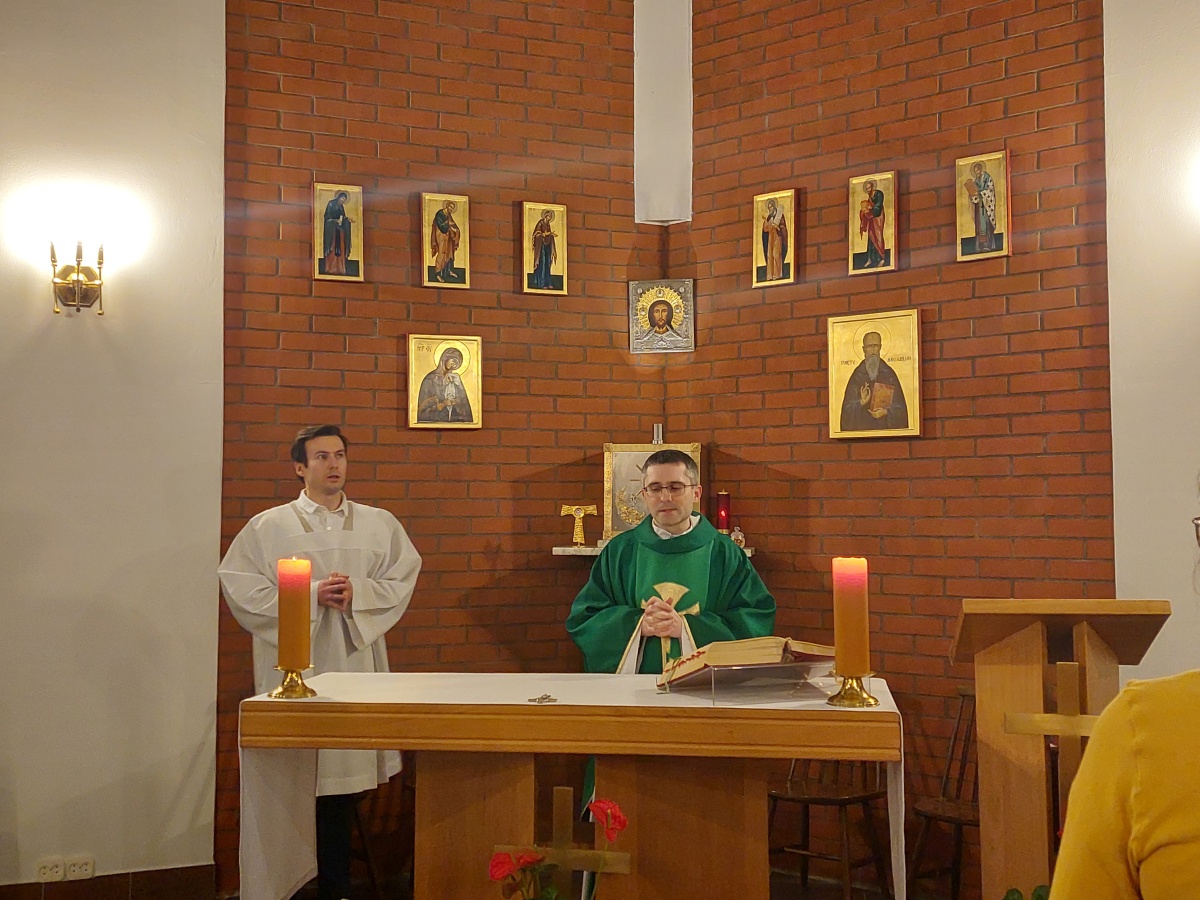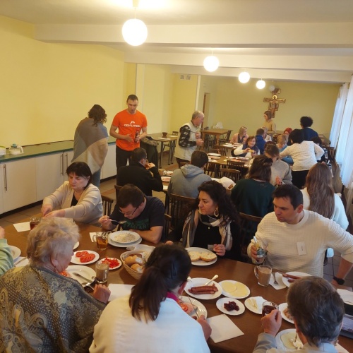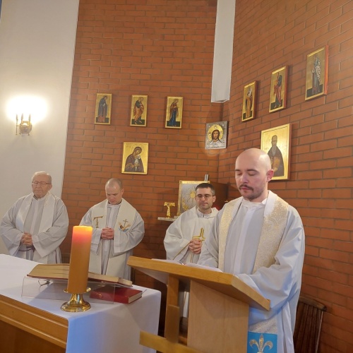 W dniach 9-10 lutego 2024 r. w Centrum św. Maksymiliana w Harmężach uczestnicy II Weekendowego Spotkania Formacyjnego MI, którzy przybyli do Harmęż z wielu stron naszego kraju, nie tylko wysłuchali konferencji o. Arkadiusza Bąka, ale także wzięli udział w warsztatach w oparciu o przygotowane materiały. Tematem lutowego spotkania były słowa Pana Jezusa z mateuszowej Ewangelii: ”Odwagi! Ja jestem, nie bójcie się.” Mt 14,27. Rycerze rozważali dwa fragmenty Ewangelii św. Mateusza: 3, 13 - 17 Chrzest Jezusa oraz 14, 22-33 Jezus chodzi po wodzie a także wybrane teksty z Pism św. Maksymiliana: 882 IV - MI trudności oraz 1062 Któż by śmiał przypuścić? Prace w grupacha, po uprzednim wprowadzenie miały miejsce w drugim dniu spotkania. Pierwszy dzień to udział w Mszy św. połączony z konferencją, Adoracja NS oraz zawiązanie wspólnoty - spotkanie przy wspólnym stole. O. Arkadiusz, który wygłosił swoje konferencje podczas Mszy Świętych w pierwszym i drugim dniu oraz dodatkowej nauce w drugim dniu zwrócił uwagę na istotne aspekty życia rycerza Niepokalanej. "Rycerz Niepokalanej - powiedział o. Arkadiusz - tak jak ten głuchoniemy z dzisiejszej Ewangelii - potrzebuje zmysłów słuchu i mowy". Zdaje się, że on sam nie odczuwał potrzeby uzdrowienia, ponieważ sam nie przyszedł do Jezusa, został doprowadzony przez swoich znajomych - to kolejne zadania lidera i każdego rycerza Niepokalanej - przyprowadzać do Jezusa przez Niepokalaną. Wskazówką dla nas jest także to, że Jezus bierze tego człowieka na bok i tam go uzdrawia - nie możemy wykonywać swoich zadań na pokaz. Mamy wchodzić, jak Jezus, w relację z drugim człowiekiem, nikogo nie odrzucać. Jako duchowe dzieci Maksymiliana powinniśmy wchodzić w myślenie Boga. To miłość jest twórcza, nienawiść prowadzi donikąd - powiedział za św. Maksymilianem o. Arkadiusz. Niezwykle wymownym gestem Jezusa jest zwrócenie wzroku ku górze i wypowiedzenie słów: effata - otwórz się -. Jezus tym gestem pokazuje nam źródło łaski, które pochodzi od Ojca na nas. "Prośmy, abyśmy w pierwszej kolejności, zanim cokolwiek do kogoś powiedziemy, słuchali, abyśmy usłyszeli nad sobą słowa Jezusa: "effata - otwórz się" - zwrócił się do wszystkich uczestników o. Arkadiusz. W drugim dniu w swojej pierwszej konferencji o. Arkadiusz odnosząc się do Ewangelii z dnia zwraca naszą uwagę na 4 istotne jej aspekty: "1. litość Boga - Jezus lituje się nad swoimi uczniami, 2. trwanie przy Jezusie, - Jezus lituje się bo Jego uczeń jest przy nim, Jezus nas nigdy nie zostawi, zawsze jest przy nas. 3. Jezus jest pokarmem, prowadzi nas do stołu, do wspólnoty, dzisiaj dzieli się z nami sobą - jeśli Jezus nic nie zrobi w naszym życiu, ustaniemy w drodze, zasłabnę - przede wszystkim duchowo. Zatem trwajmy przy Nim. Może się jednak wkraść w moje życie wątpliwość, mogę nawet doświadczać cudów, a i tak przy braku czujności mogę zwątpić. 4. Jezus stawia pytanie: Ile macie chlebów? Dzisiaj Jezus może to pytanie postawić każdemu z nas: ile posiadasz darów, ile talentów ludzkich? I to w zestawieniu z potrzebami jest pewnie bardzo niewiele, ale Jezus mówi, aby przynieść Mu to moje "nic" to moje "niewiele", by przyjąć od Niego jeszcze więcej. By cud mógł się stać, potrzba jest coś dać, nawet to niewiele" - powiedział kaznodzieja. W drugiej konferencji o. Arkadiusz razem ze św.Maksymilianem analizuje trudności, jakie napotykamy i napotykać będziemy na naszej drodze. Kluczem ich przezywyciężenia jest zrozumienie i niezniechęcanie się, ale ufne zwracanie się do Niepokalanej - Wszechpośredniczki łask, we wszystkich trudnościach.