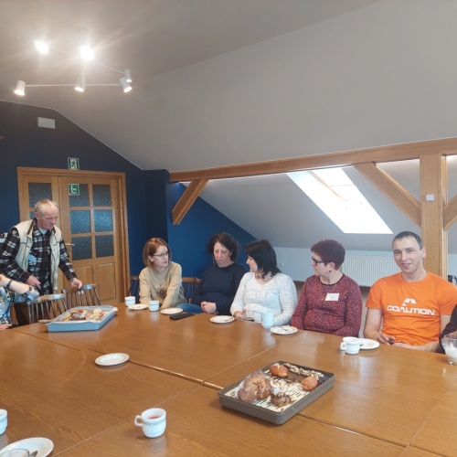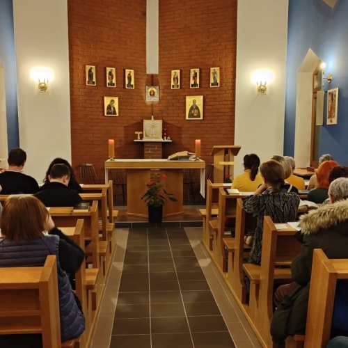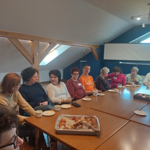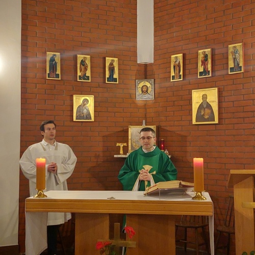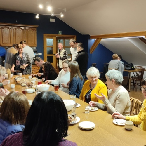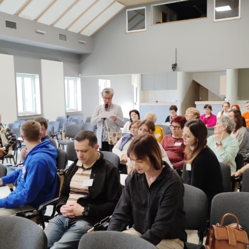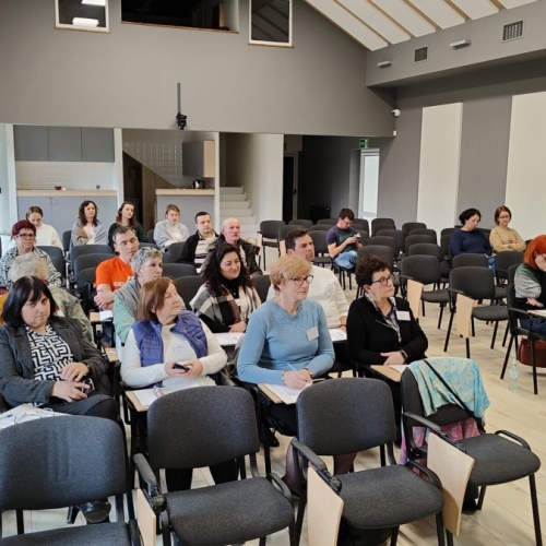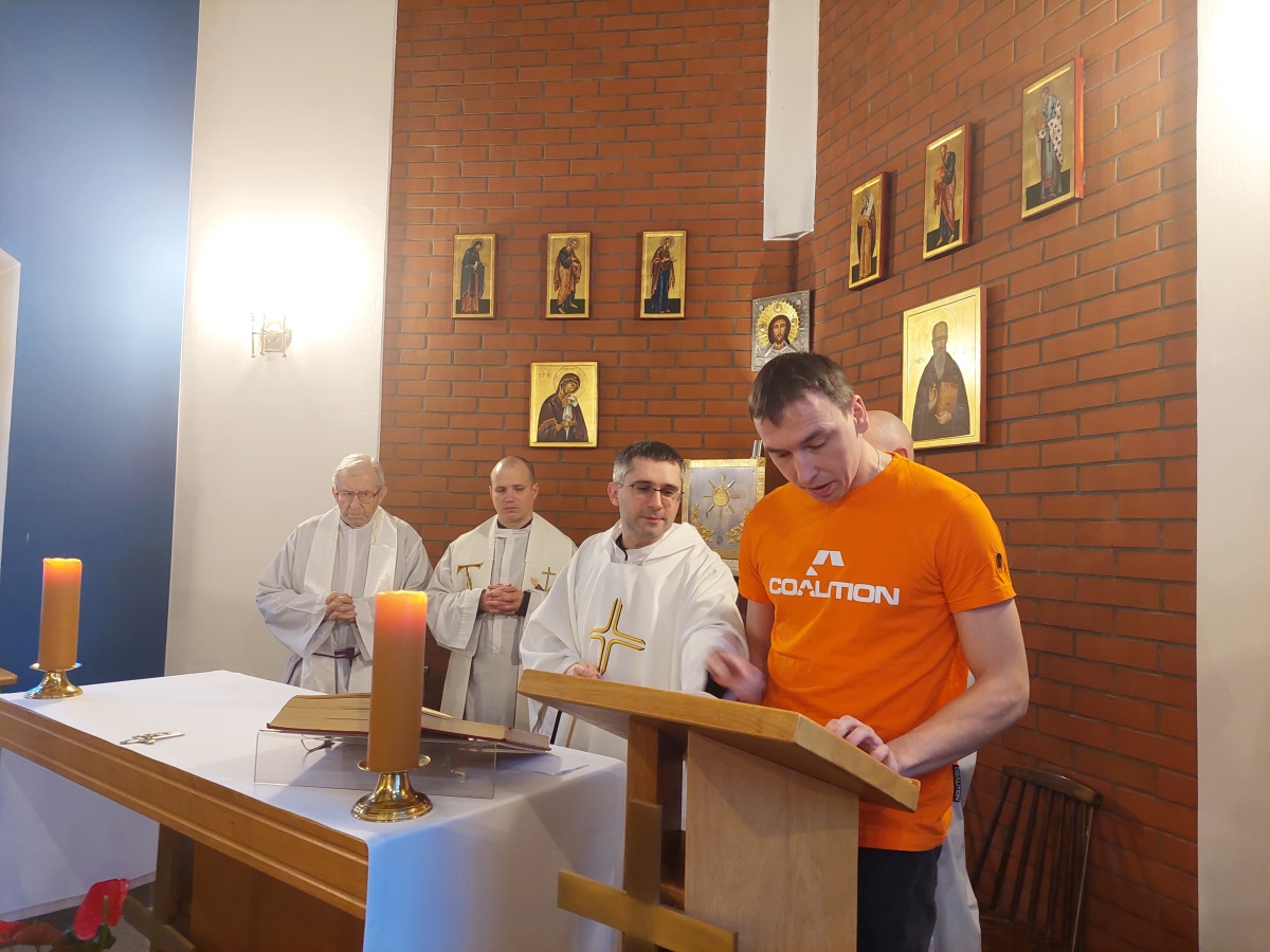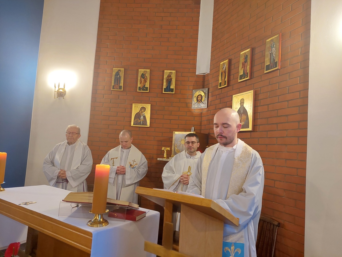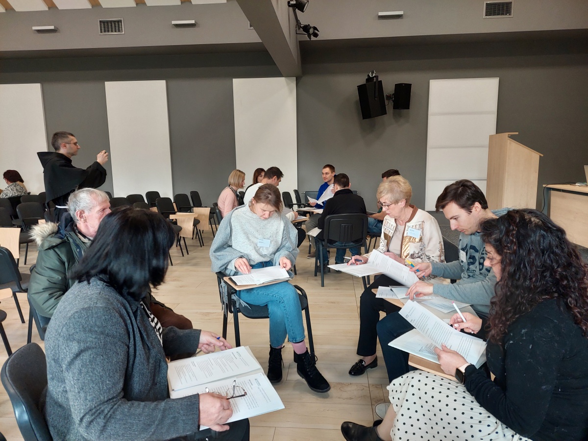 W dniach 9-10 lutego 2024 r. w Centrum św. Maksymiliana w Harmężach uczestnicy II Weekendowego Spotkania Formacyjnego MI, którzy przybyli do Harmęż z wielu stron naszego kraju, nie tylko wysłuchali konferencji o. Arkadiusza Bąka, ale także wzięli udział w warsztatach w oparciu o przygotowane materiały. Tematem lutowego spotkania były słowa Pana Jezusa z mateuszowej Ewangelii: ”Odwagi! Ja jestem, nie bójcie się.” Mt 14,27. Rycerze rozważali dwa fragmenty Ewangelii św. Mateusza: 3, 13 - 17 Chrzest Jezusa oraz 14, 22-33 Jezus chodzi po wodzie a także wybrane teksty z Pism św. Maksymiliana: 882 IV - MI trudności oraz 1062 Któż by śmiał przypuścić? Prace w grupacha, po uprzednim wprowadzenie miały miejsce w drugim dniu spotkania. Pierwszy dzień to udział w Mszy św. połączony z konferencją, Adoracja NS oraz zawiązanie wspólnoty - spotkanie przy wspólnym stole. O. Arkadiusz, który wygłosił swoje konferencje podczas Mszy Świętych w pierwszym i drugim dniu oraz dodatkowej nauce w drugim dniu zwrócił uwagę na istotne aspekty życia rycerza Niepokalanej. "Rycerz Niepokalanej - powiedział o. Arkadiusz - tak jak ten głuchoniemy z dzisiejszej Ewangelii - potrzebuje zmysłów słuchu i mowy". Zdaje się, że on sam nie odczuwał potrzeby uzdrowienia, ponieważ sam nie przyszedł do Jezusa, został doprowadzony przez swoich znajomych - to kolejne zadania lidera i każdego rycerza Niepokalanej - przyprowadzać do Jezusa przez Niepokalaną. Wskazówką dla nas jest także to, że Jezus bierze tego człowieka na bok i tam go uzdrawia - nie możemy wykonywać swoich zadań na pokaz. Mamy wchodzić, jak Jezus, w relację z drugim człowiekiem, nikogo nie odrzucać. Jako duchowe dzieci Maksymiliana powinniśmy wchodzić w myślenie Boga. To miłość jest twórcza, nienawiść prowadzi donikąd - powiedział za św. Maksymilianem o. Arkadiusz. Niezwykle wymownym gestem Jezusa jest zwrócenie wzroku ku górze i wypowiedzenie słów: effata - otwórz się -. Jezus tym gestem pokazuje nam źródło łaski, które pochodzi od Ojca na nas. "Prośmy, abyśmy w pierwszej kolejności, zanim cokolwiek do kogoś powiedziemy, słuchali, abyśmy usłyszeli nad sobą słowa Jezusa: "effata - otwórz się" - zwrócił się do wszystkich uczestników o. Arkadiusz. W drugim dniu w swojej pierwszej konferencji o. Arkadiusz odnosząc się do Ewangelii z dnia zwraca naszą uwagę na 4 istotne jej aspekty: "1. litość Boga - Jezus lituje się nad swoimi uczniami, 2. trwanie przy Jezusie, - Jezus lituje się bo Jego uczeń jest przy nim, Jezus nas nigdy nie zostawi, zawsze jest przy nas. 3. Jezus jest pokarmem, prowadzi nas do stołu, do wspólnoty, dzisiaj dzieli się z nami sobą - jeśli Jezus nic nie zrobi w naszym życiu, ustaniemy w drodze, zasłabnę - przede wszystkim duchowo. Zatem trwajmy przy Nim. Może się jednak wkraść w moje życie wątpliwość, mogę nawet doświadczać cudów, a i tak przy braku czujności mogę zwątpić. 4. Jezus stawia pytanie: Ile macie chlebów? Dzisiaj Jezus może to pytanie postawić każdemu z nas: ile posiadasz darów, ile talentów ludzkich? I to w zestawieniu z potrzebami jest pewnie bardzo niewiele, ale Jezus mówi, aby przynieść Mu to moje "nic" to moje "niewiele", by przyjąć od Niego jeszcze więcej. By cud mógł się stać, potrzba jest coś dać, nawet to niewiele" - powiedział kaznodzieja. W drugiej konferencji o. Arkadiusz razem ze św.Maksymilianem analizuje trudności, jakie napotykamy i napotykać będziemy na naszej drodze. Kluczem ich przezywyciężenia jest zrozumienie i niezniechęcanie się, ale ufne zwracanie się do Niepokalanej - Wszechpośredniczki łask, we wszystkich trudnościach.