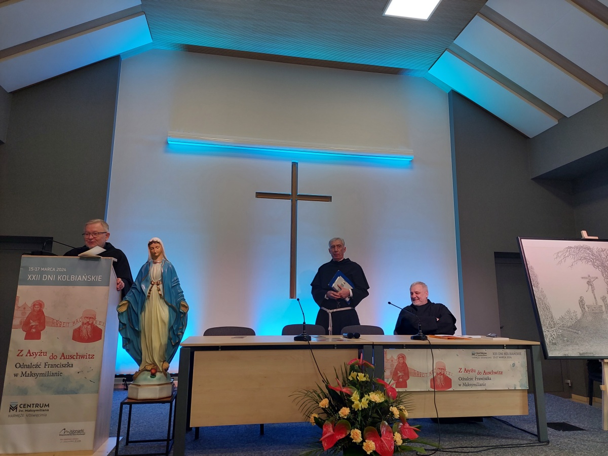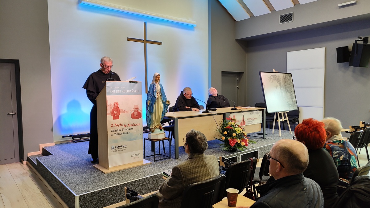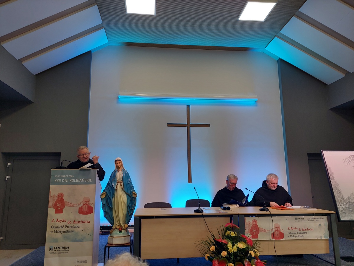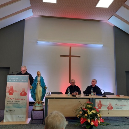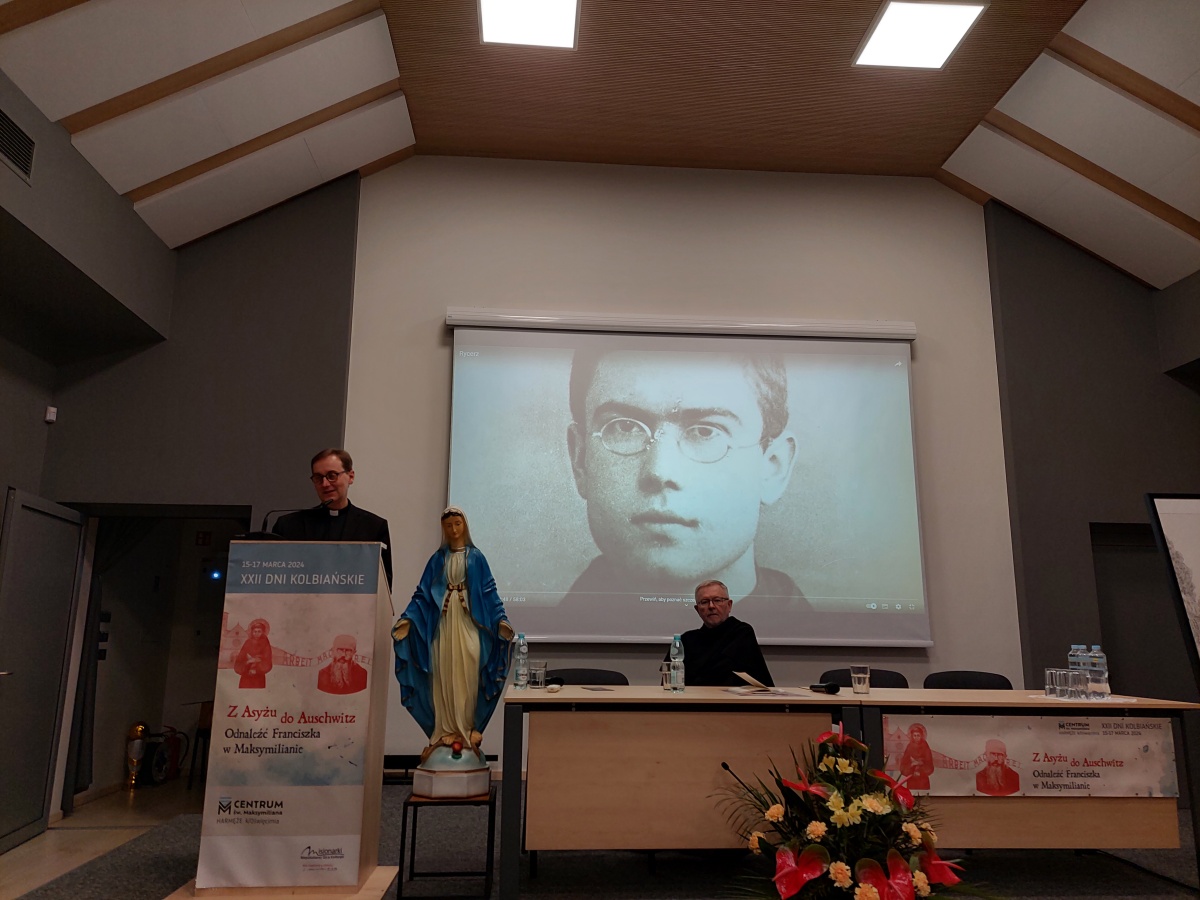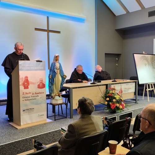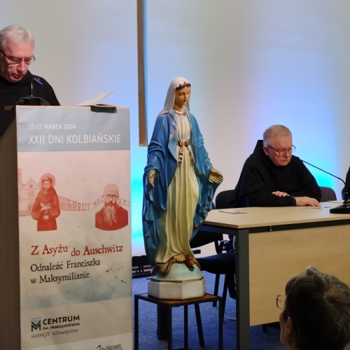 "Z Asyżu do Auschwitz - Odnaleźć Franciszka w Maksymilianie" - to temat XXII Dni Kolbiańskich, które odbyły się w Centrum św. Maksymiliana w Harmężach w dniach od 15 do 17 marca 2024 r. Patronat nad wydarzeniem objęli: Katedra Kolbiańska Papeskiego Wydziału Teologicznego św. Bonawentury Seraficum w Rzymie oraz ks. bp. Roman Pindel, Biskup Diecezji Bielsko- Żywieckiej, a gospodarzem były Misjonarki o. Kolbego. Wydarzenie rozpoczęło się w piątek od uroczystej Mszy św., której przewodniczył ks. kard. Kazimierz Nycz. W sobotę uczestnicy wzięli udział w wykładach: o. Stanisława Ziemińskiego OFMConv. pt. " Posłuszeństwo papieżowi jako wyraz wierności Kościołowi rzymskiemu", o. Piotra Bielenina OFMConv. nt. "Osobiste świadectwo życia jako najskuteczniejsza forma ewangelizacji" oraz o. Tomasza Szymczaka OFMConv. pt. "Braterstwo wobec stworzenia darem z siebie". Ciekawym zwięczeniem sobotniego dnia była możliwość obejrzenia filmu dokumentalnego "Rycerz" o św. Maksymilianie poprzedzonego przedmową ks. Marka Gancarczyka nt. jego powstania. Po projekcji z uwagi na możliwość zadawania pytań wywiązała się bardzo interesująca dyskusja. Wieczorem wszyscy chętni udali się na zwiedzanie wystawy, mieszczącej się w podziemiach kościoła: "Klisze pamięci. Labirynty" Mariana Kołodzieja. Podsumowaniem XXII Dni Kolbiańskich była niedzielna praca w grupach w oparciu o przygotowane pytania, a wyciągnięte wnioski stanowią swoisty drogowskaz życia.