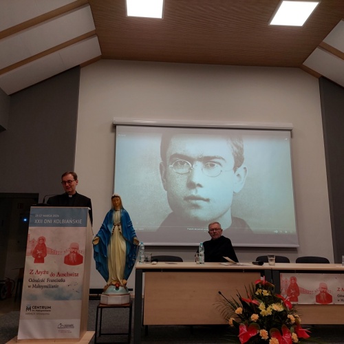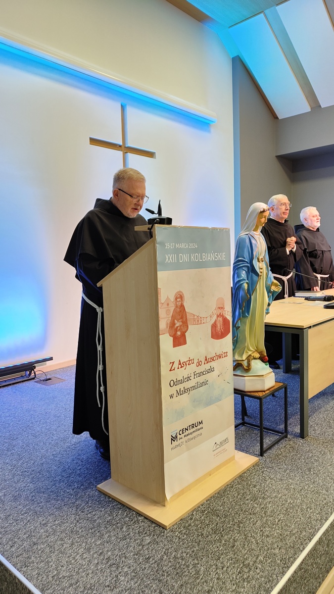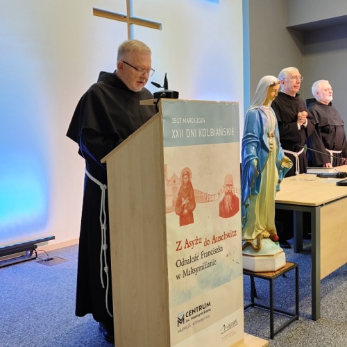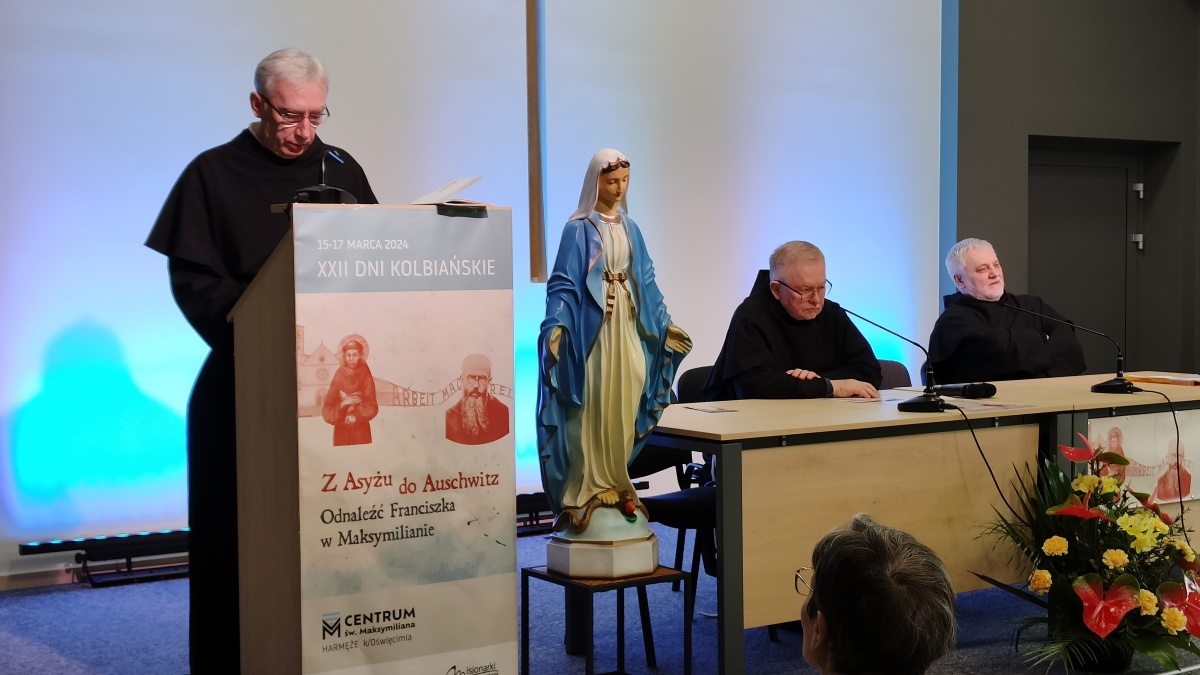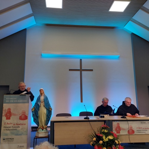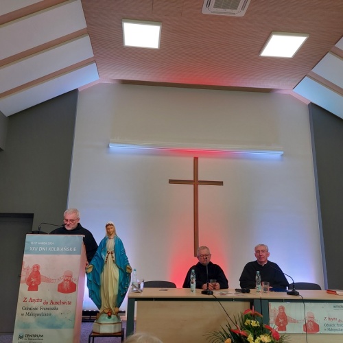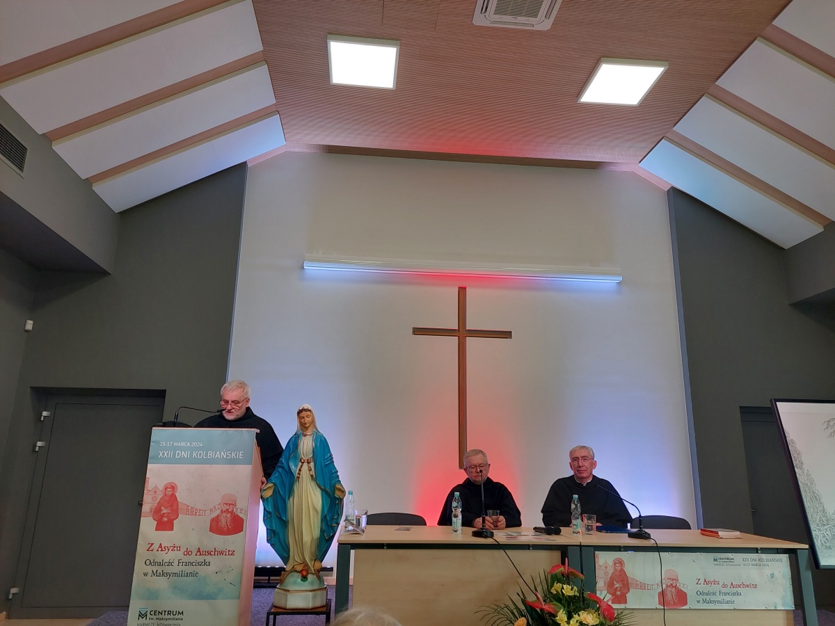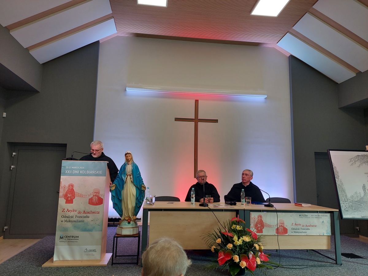 "Z Asyżu do Auschwitz - Odnaleźć Franciszka w Maksymilianie" - to temat XXII Dni Kolbiańskich, które odbyły się w Centrum św. Maksymiliana w Harmężach w dniach od 15 do 17 marca 2024 r. Patronat nad wydarzeniem objęli: Katedra Kolbiańska Papeskiego Wydziału Teologicznego św. Bonawentury Seraficum w Rzymie oraz ks. bp. Roman Pindel, Biskup Diecezji Bielsko- Żywieckiej, a gospodarzem były Misjonarki o. Kolbego. Wydarzenie rozpoczęło się w piątek od uroczystej Mszy św., której przewodniczył ks. kard. Kazimierz Nycz. W sobotę uczestnicy wzięli udział w wykładach: o. Stanisława Ziemińskiego OFMConv. pt. " Posłuszeństwo papieżowi jako wyraz wierności Kościołowi rzymskiemu", o. Piotra Bielenina OFMConv. nt. "Osobiste świadectwo życia jako najskuteczniejsza forma ewangelizacji" oraz o. Tomasza Szymczaka OFMConv. pt. "Braterstwo wobec stworzenia darem z siebie". Ciekawym zwięczeniem sobotniego dnia była możliwość obejrzenia filmu dokumentalnego "Rycerz" o św. Maksymilianie poprzedzonego przedmową ks. Marka Gancarczyka nt. jego powstania. Po projekcji z uwagi na możliwość zadawania pytań wywiązała się bardzo interesująca dyskusja. Wieczorem wszyscy chętni udali się na zwiedzanie wystawy, mieszczącej się w podziemiach kościoła: "Klisze pamięci. Labirynty" Mariana Kołodzieja. Podsumowaniem XXII Dni Kolbiańskich była niedzielna praca w grupach w oparciu o przygotowane pytania, a wyciągnięte wnioski stanowią swoisty drogowskaz życia.