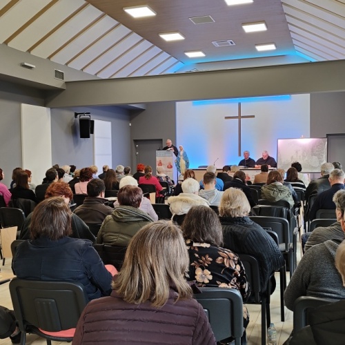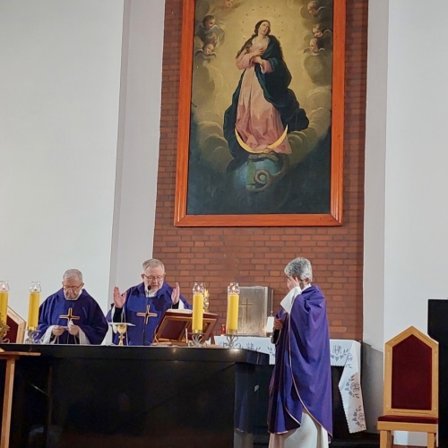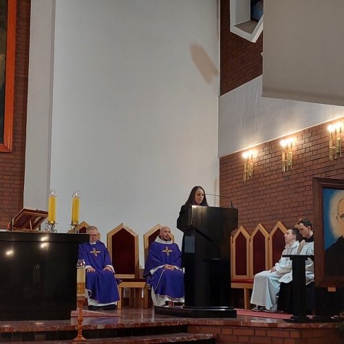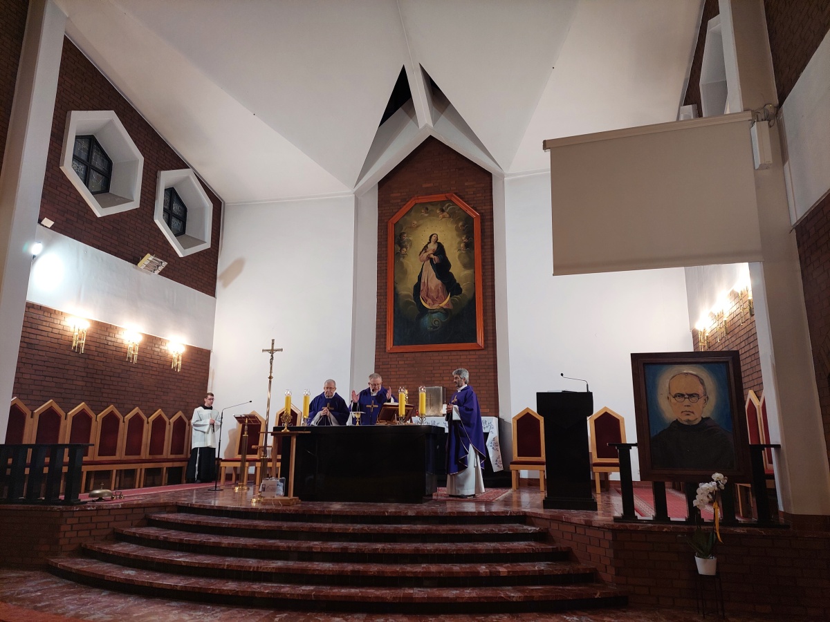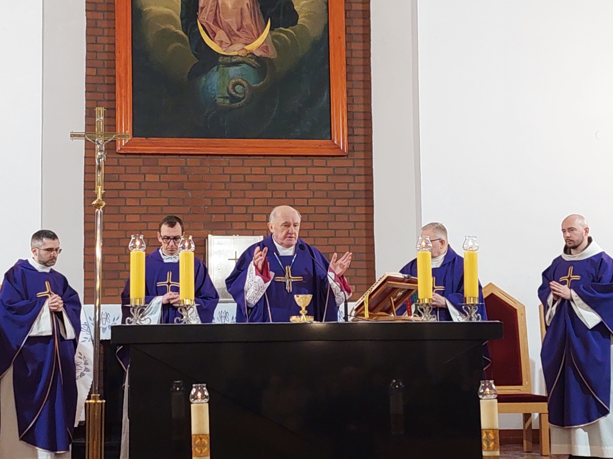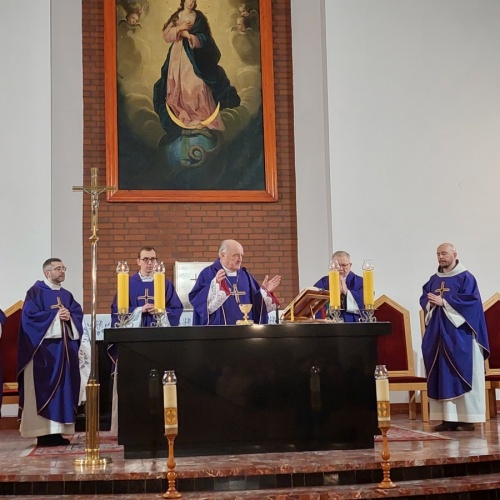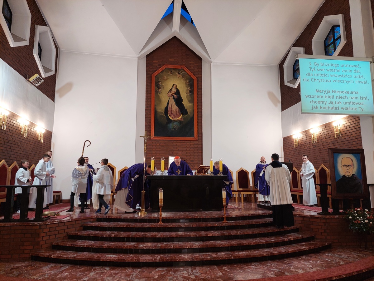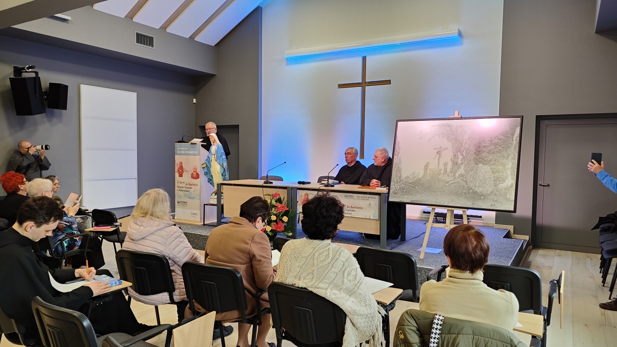 "Z Asyżu do Auschwitz - Odnaleźć Franciszka w Maksymilianie" - to temat XXII Dni Kolbiańskich, które odbyły się w Centrum św. Maksymiliana w Harmężach w dniach od 15 do 17 marca 2024 r. Patronat nad wydarzeniem objęli: Katedra Kolbiańska Papeskiego Wydziału Teologicznego św. Bonawentury Seraficum w Rzymie oraz ks. bp. Roman Pindel, Biskup Diecezji Bielsko- Żywieckiej, a gospodarzem były Misjonarki o. Kolbego. Wydarzenie rozpoczęło się w piątek od uroczystej Mszy św., której przewodniczył ks. kard. Kazimierz Nycz. W sobotę uczestnicy wzięli udział w wykładach: o. Stanisława Ziemińskiego OFMConv. pt. " Posłuszeństwo papieżowi jako wyraz wierności Kościołowi rzymskiemu", o. Piotra Bielenina OFMConv. nt. "Osobiste świadectwo życia jako najskuteczniejsza forma ewangelizacji" oraz o. Tomasza Szymczaka OFMConv. pt. "Braterstwo wobec stworzenia darem z siebie". Ciekawym zwięczeniem sobotniego dnia była możliwość obejrzenia filmu dokumentalnego "Rycerz" o św. Maksymilianie poprzedzonego przedmową ks. Marka Gancarczyka nt. jego powstania. Po projekcji z uwagi na możliwość zadawania pytań wywiązała się bardzo interesująca dyskusja. Wieczorem wszyscy chętni udali się na zwiedzanie wystawy, mieszczącej się w podziemiach kościoła: "Klisze pamięci. Labirynty" Mariana Kołodzieja. Podsumowaniem XXII Dni Kolbiańskich była niedzielna praca w grupach w oparciu o przygotowane pytania, a wyciągnięte wnioski stanowią swoisty drogowskaz życia.