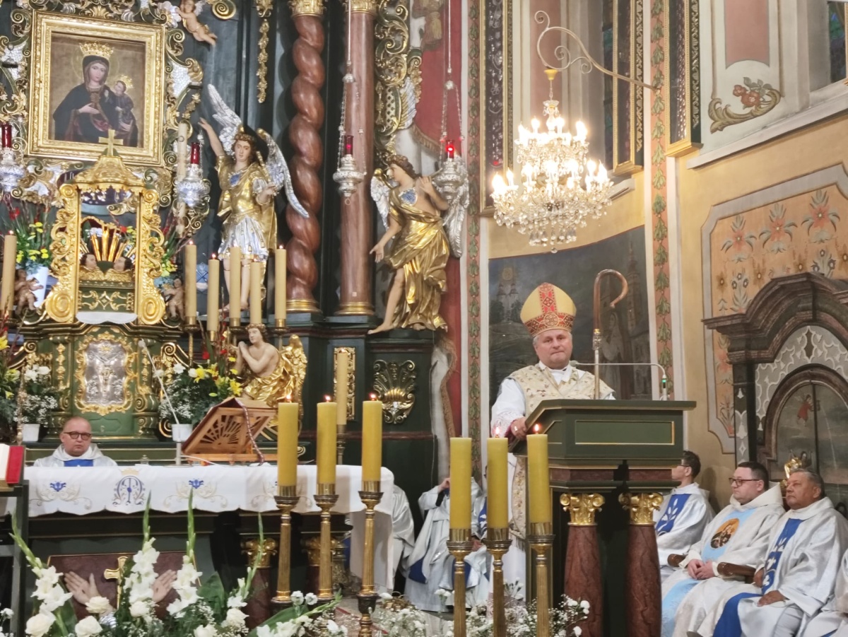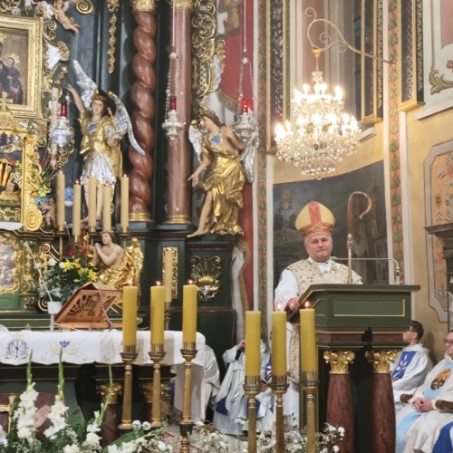 Uroczystej Mszy świętej przewodniczył i głosił słowo Boże Biskup tarnowski Ks. Bp. Leszek Leszkiewicz w obecności wielu kapłanów z dekanatu i nie tylko. W homilii wezwał do osobistego nawrócenia, refleksji nad sumieniem i życia w świetle Ewangelii. Biskup przypomniał również orędzie Matki Bożej z Fatimy, która nawoływała do pokuty i nawrócenia z powodu grzechów świata. Na zakończenie homilii przestrzegał zarazem przed zastępowaniem Słowa Bożego własnymi opiniami i zachęcał do korzystania ze wszystkich środków prowadzących do zbawienia, które posiada Kościół katolicki.