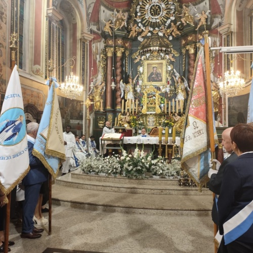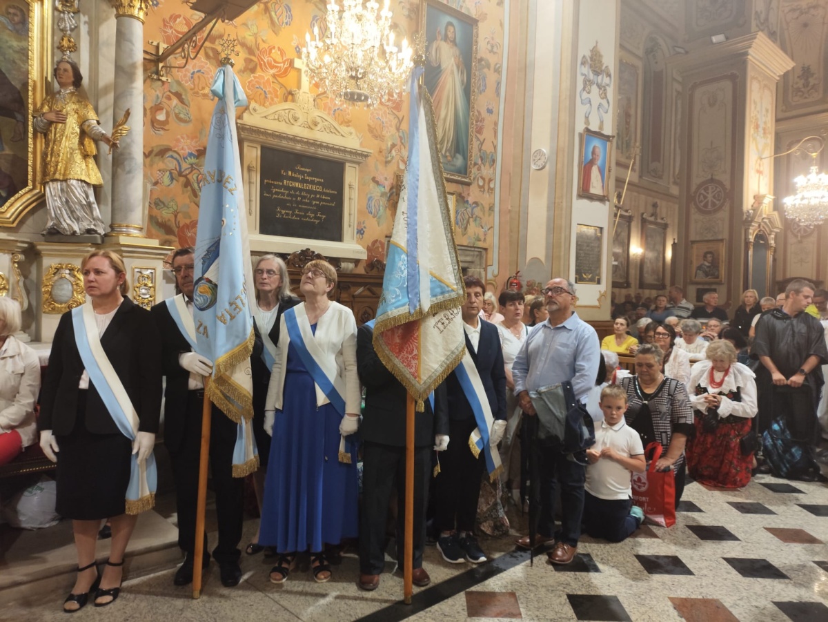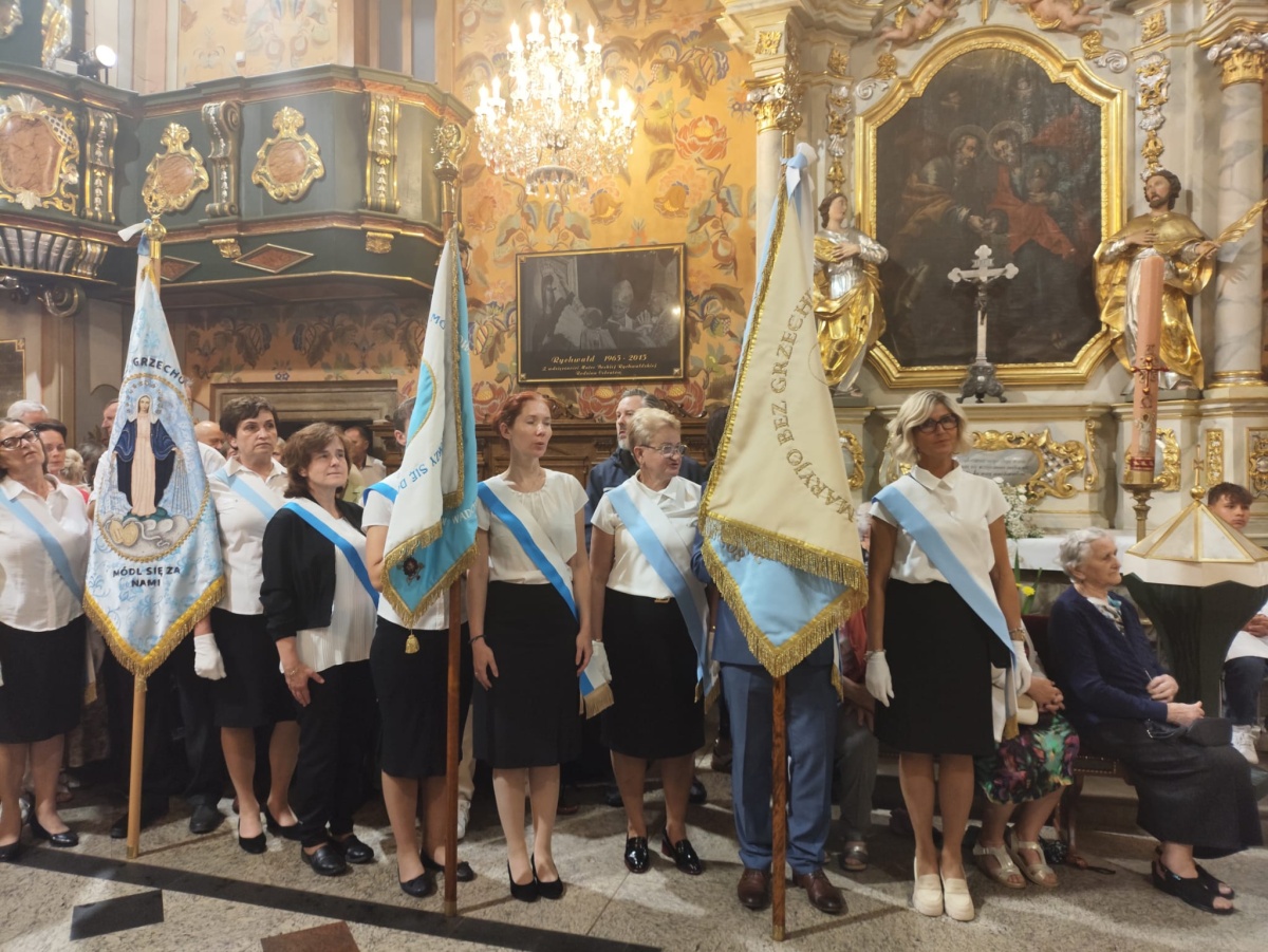 Lipcowe Nabożeństwo Fatimskie oprócz dużej liczby wiernych z Rychwałdu i pielgrzymów z okolic, zgromadziło wspólnoty Stowarzyszenia maryjnego Rycerstwo Niepokalanej z diecezji bielsko-żywieckiej na czele ze swoim Prezesem diecezjalnym Panią Renatą Nycz. Nabożeństwo rozpoczęło się Litanią Loretańską do NMP, a następnie modlitwą różańcową prowadzoną przez wspólnotę Stowarzyszenia Rycerstwo Niepokalanej z Rychwałdu rozważając tajemnice chwalebne.