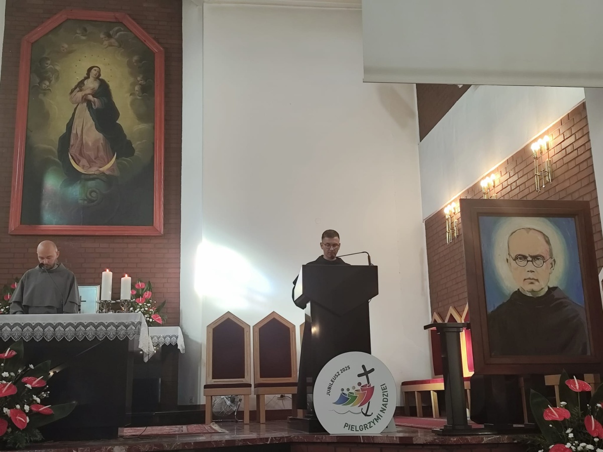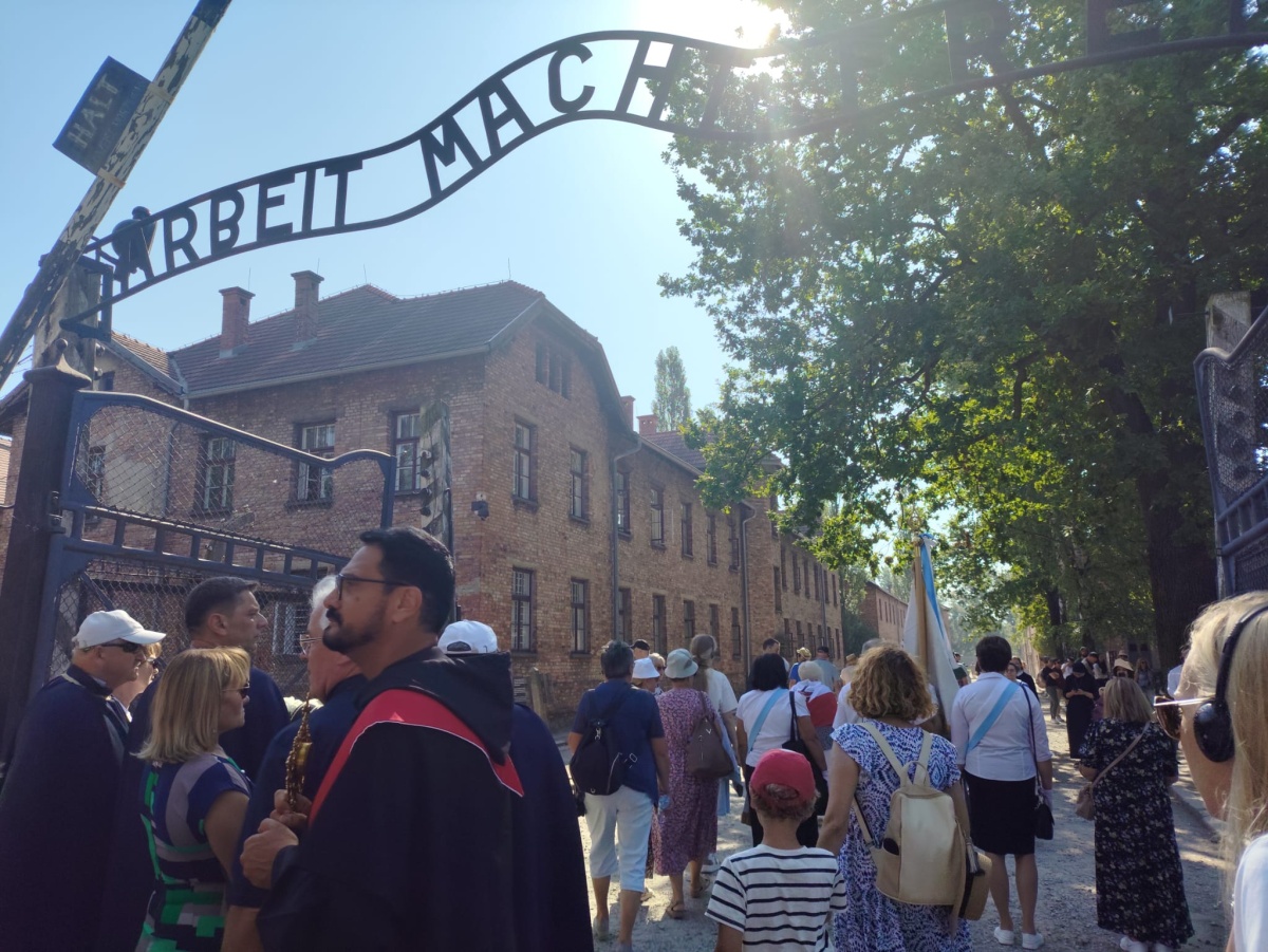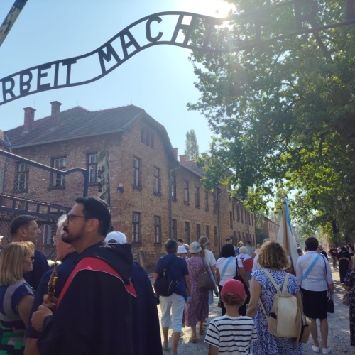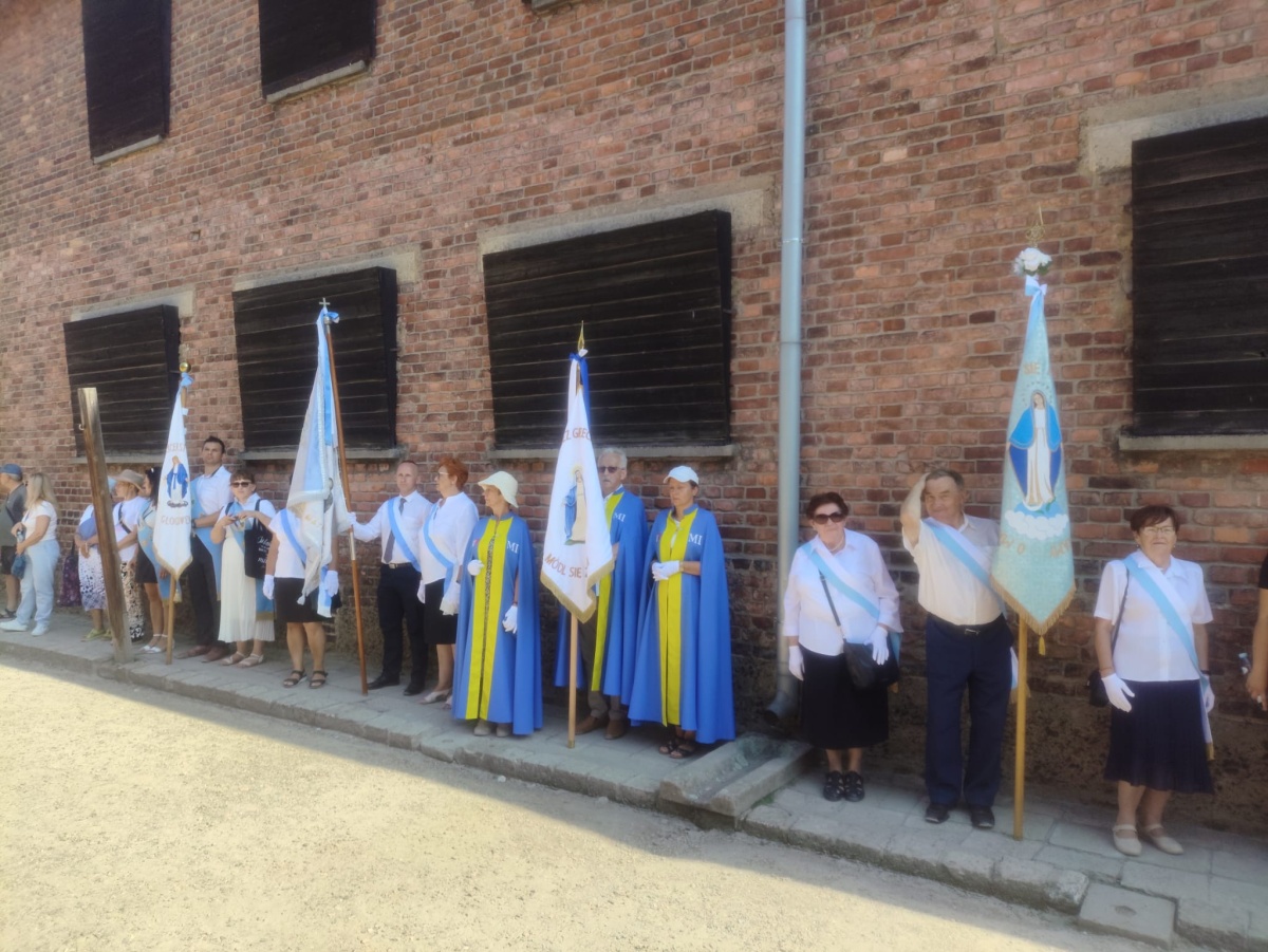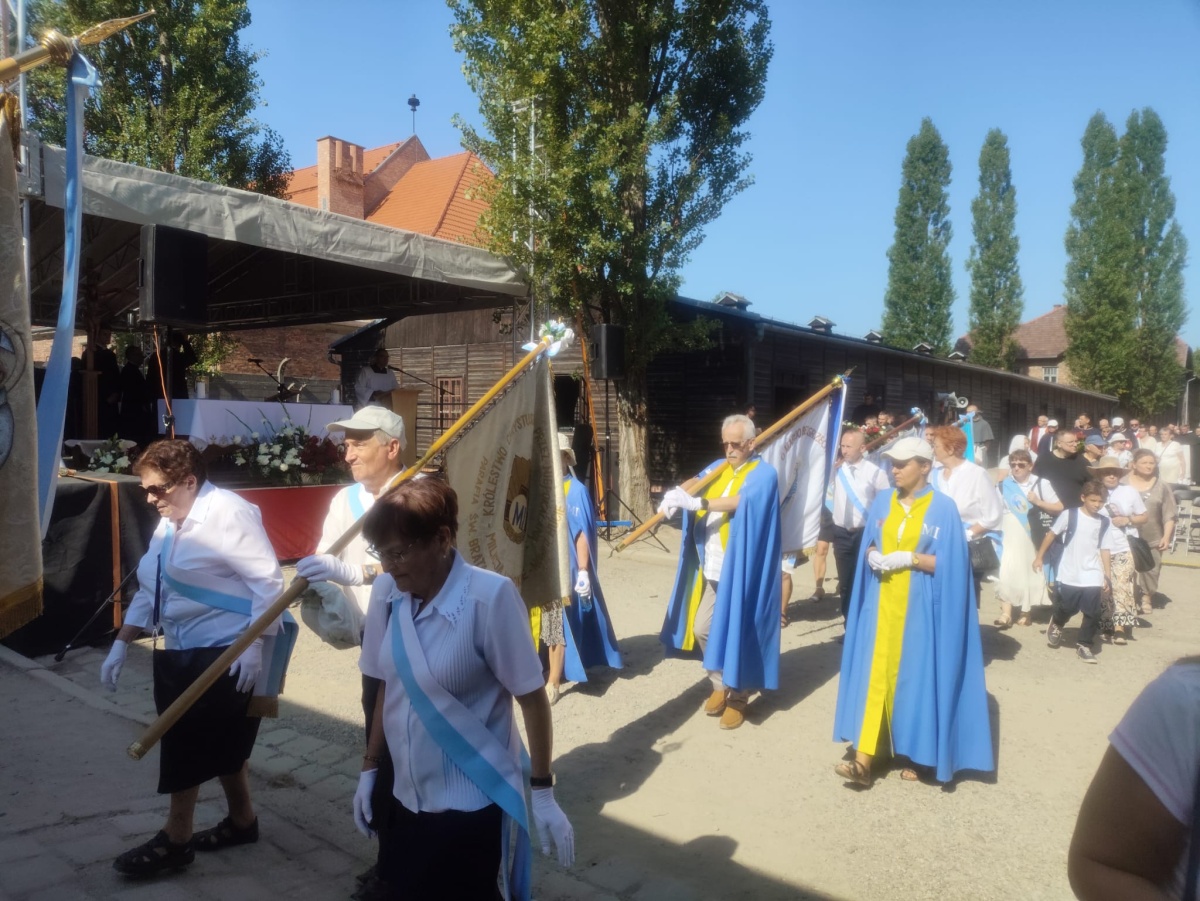 14 sierpnia 2025 roku obchodziliśmy 84 rocznicę męczeńskiej śmierci św. o. Maksymiliana Marii Kolbego. Rocznicowe obchody rozpoczęły dwie pielgrzymki do byłego niemieckiego obozu koncentracyjnego Auschwitz: z kościoła św. Maksymiliana Kolbego w Oświęcimiu oraz z Centrum Maksymiliana w Harmężach. Licznie zebrani uczestnicy z Polski oraz z różnych stron świata spotkali się przy obozowej bramie z napisem „ Arbeit macht frei”.