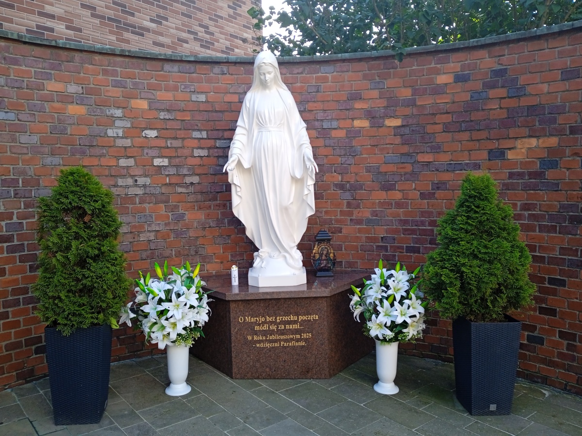 Z inicjatywy Rycerstwa Niepokalanej i przy dużym wkładzie finansowym w 2025 roku zakupiono dużą figurę Matki Boskiej Niepokalanej (wysokość 180 cm) – udział finansowy miały również inne Wspólnoty. Figura została zamontowana na cokole – dziedziniec kościelny od strony zachodniej i poświęcona.